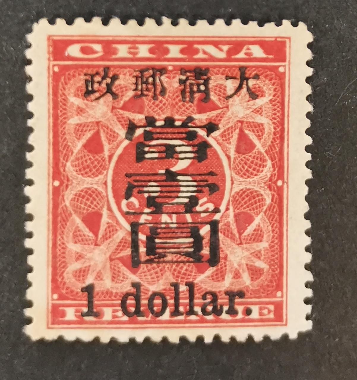 CHINA. 1897 red revenue $1 on 3c unused. SG91 Cat. £6 000. (1)