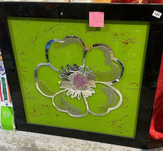 Large Black Glass Framed Liquid Art - Approx 38" x 38"
