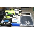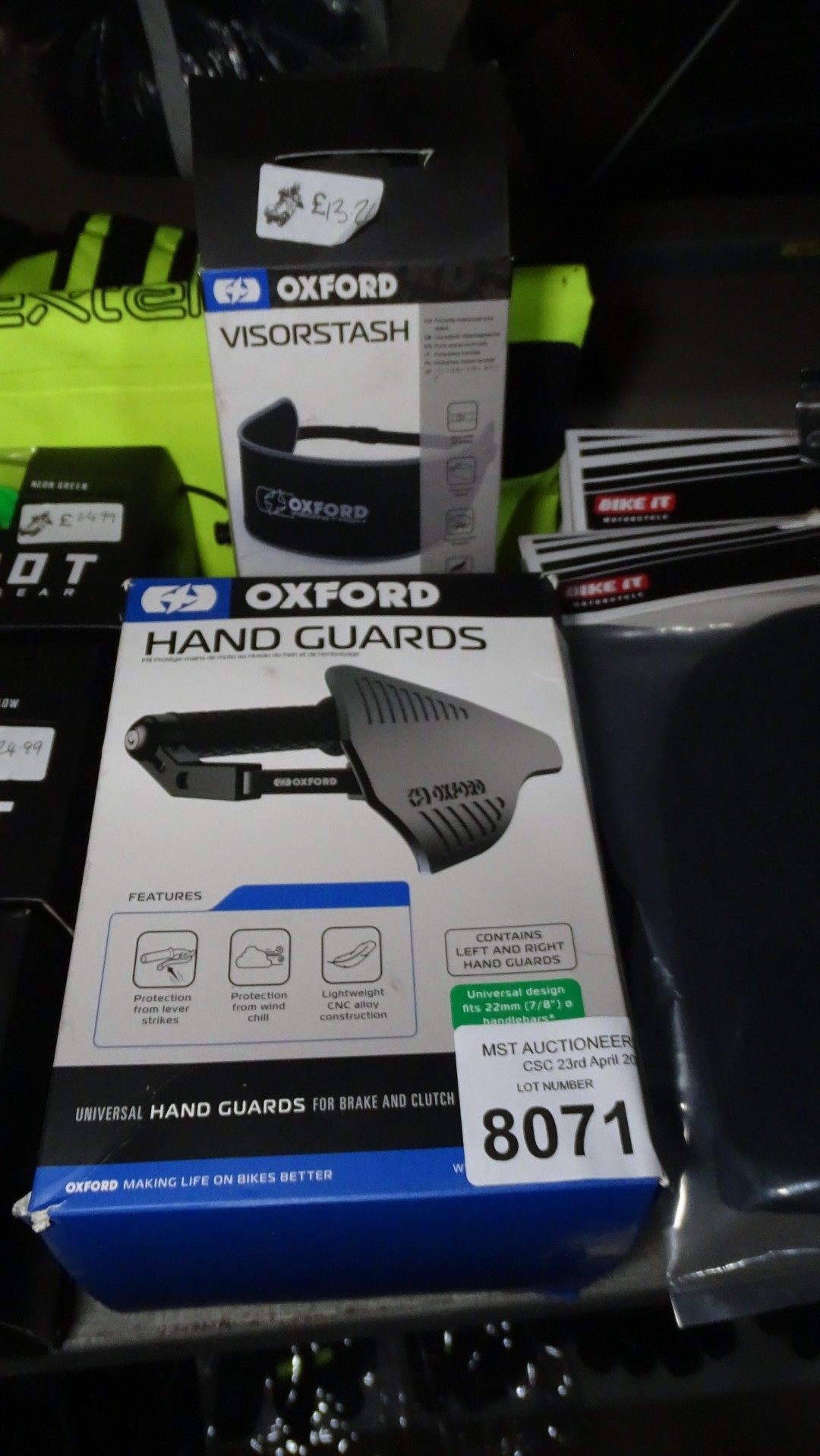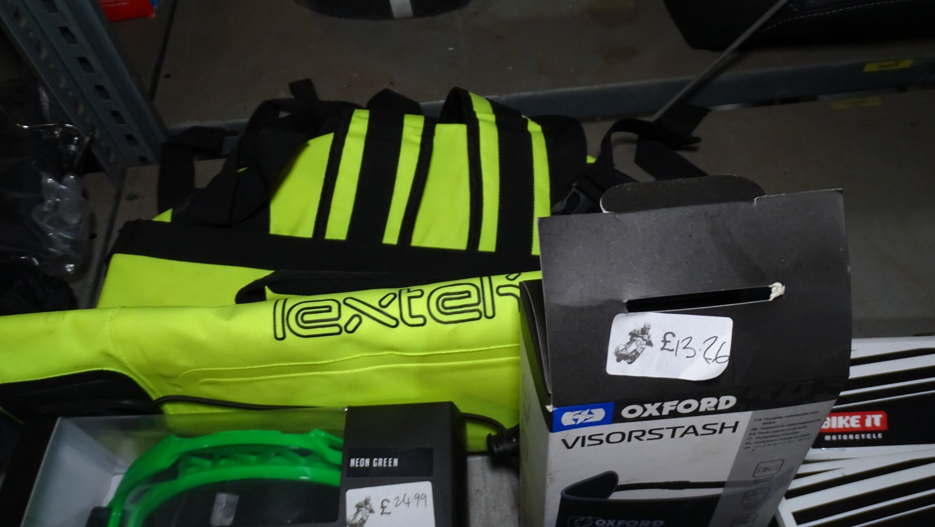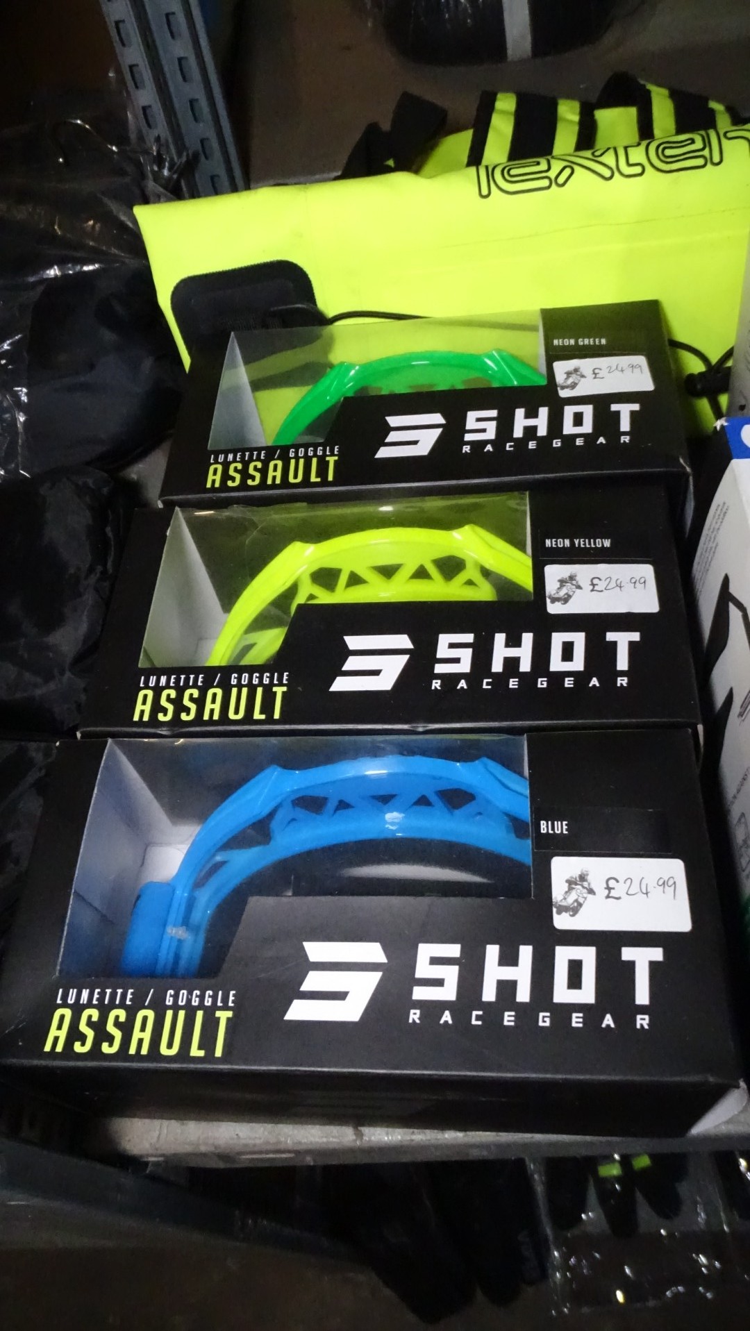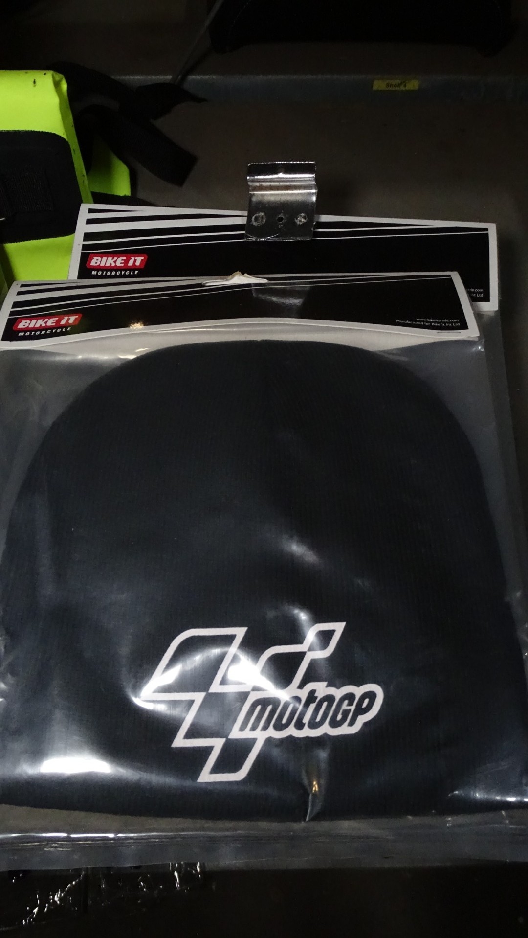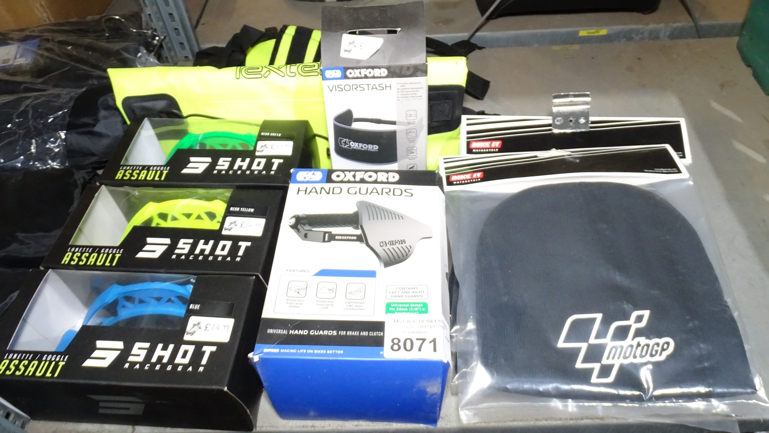 A quantity of various items to include Moto GP Hats, Goggles and a pair of hand guards etc - Contents of half a shelf