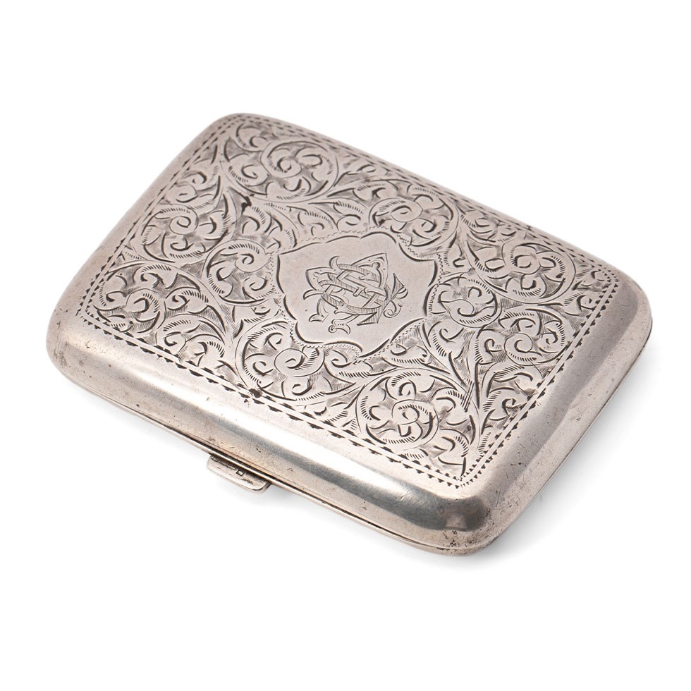 Silver cigarette case, Birmingham 1918, with chased decoration and monogram, 93.4g.