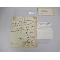 Frederick Walters Watts 1800 - 1870 (artist), a letter dated July 26th 1846 requesting the delivery of three of his pictures to Henry Howard Esquire at the Royal Academy, 4.25ins x 7ins approximately