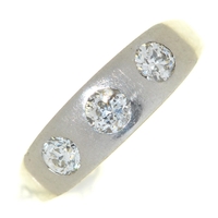 Good condition, lacking two of the chip diamonds from one shoulder, light wear scratches to hoop consistent with age