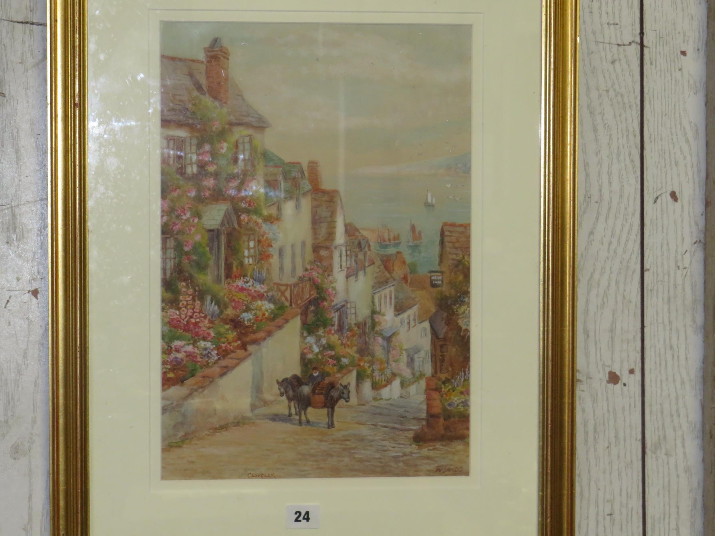 Watercolour Clovelly High Street signed W Sands 16" x 11"