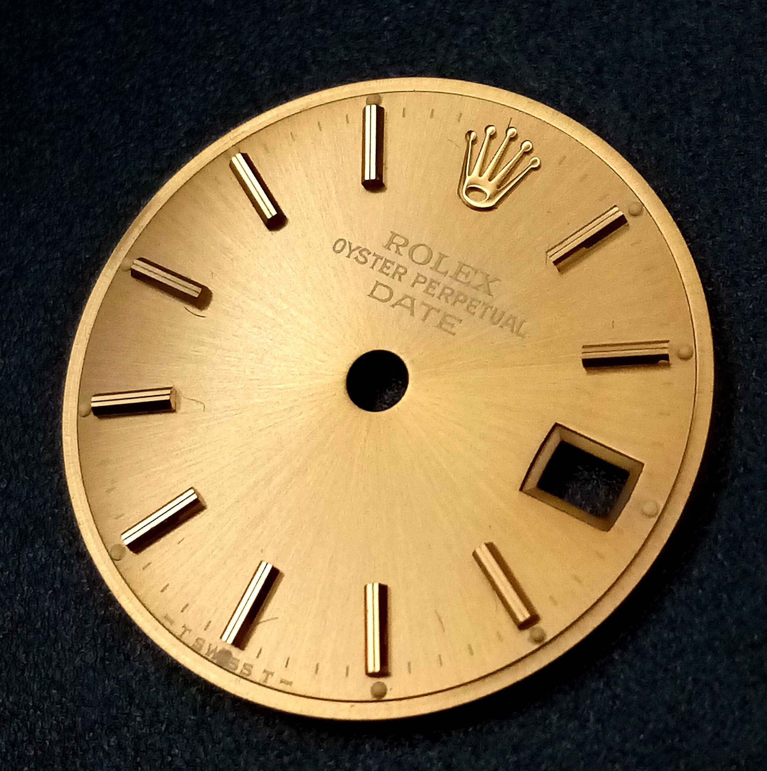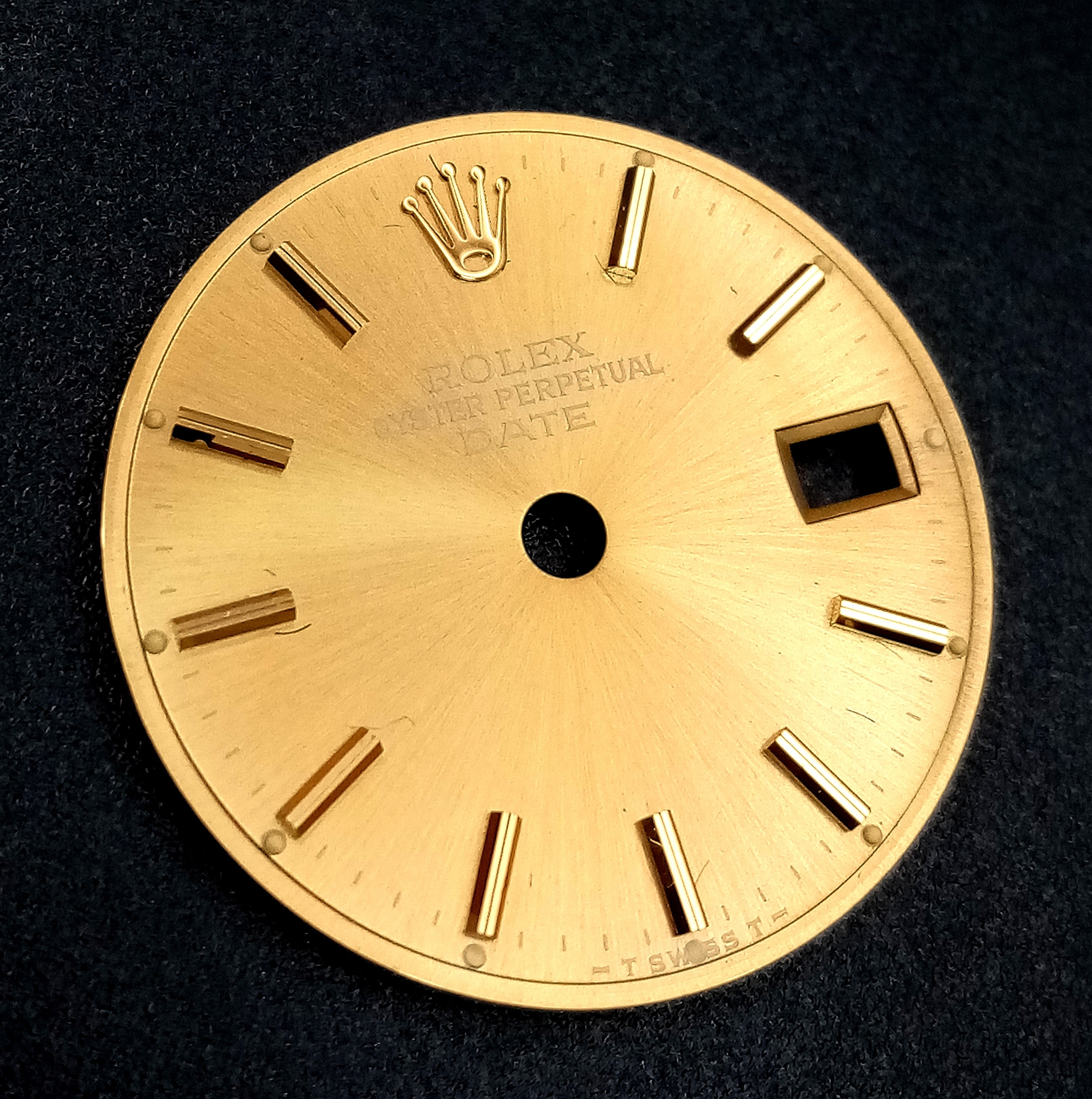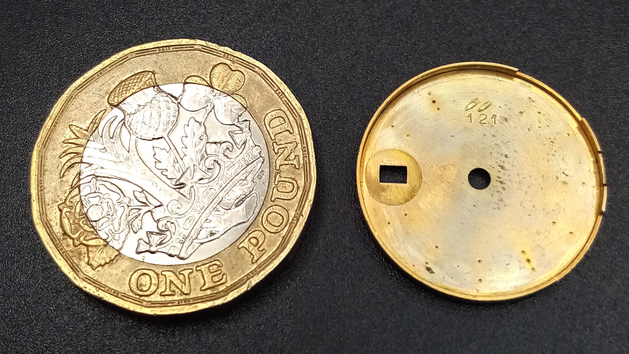 A Rolex Datejust Gilded Ladies Watch Dial. Markings of 121 on rear. 21 mm diameter.