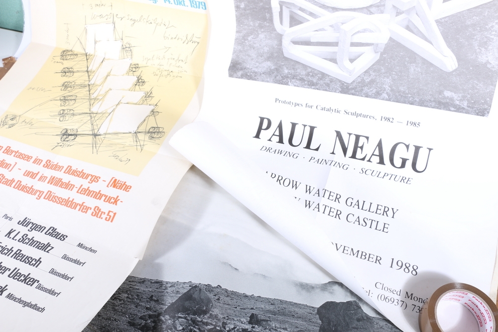 PAUL NEAGU (1938-2004) Prototypes for Catalytic Sculptures 1982-1985 Narrow Water Gallery poster, 83cm x 60cm, Richard Long Circle of Mexico 1979 poster, 48cm x 64cm and a Schwimmende Plastik 1979 art poster, 84cm x 60cm, (3)