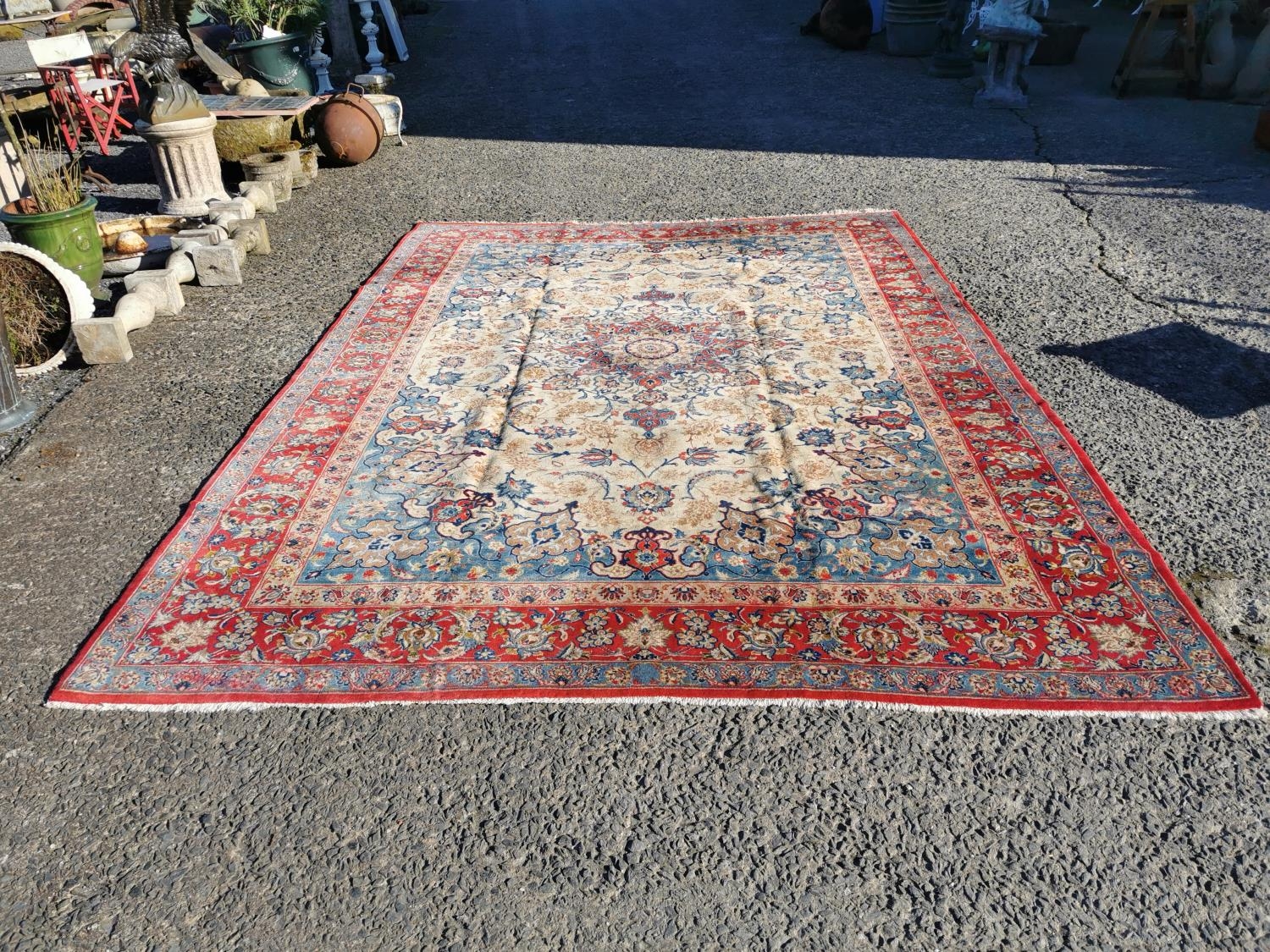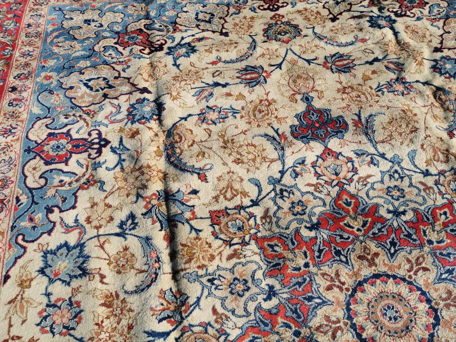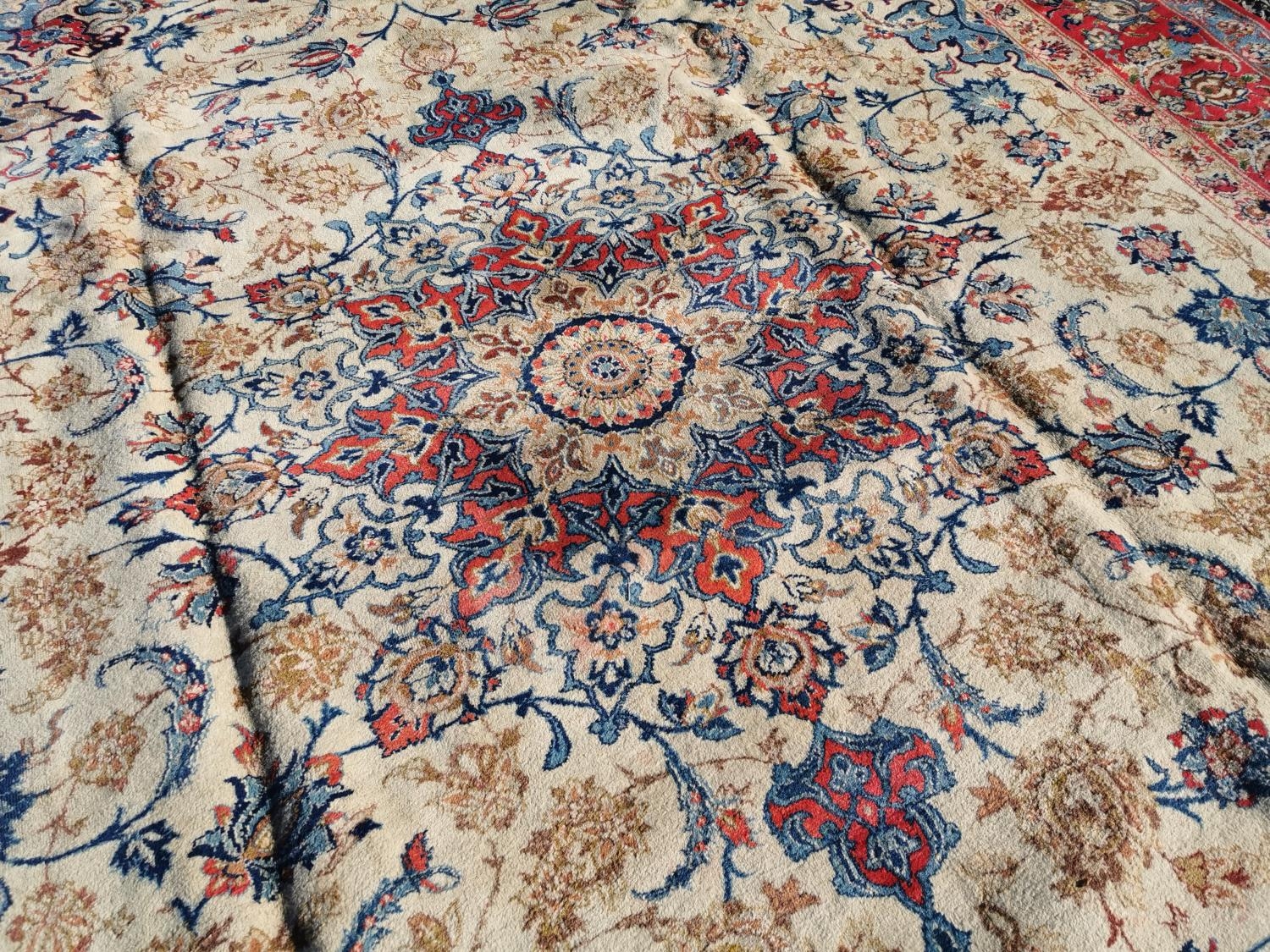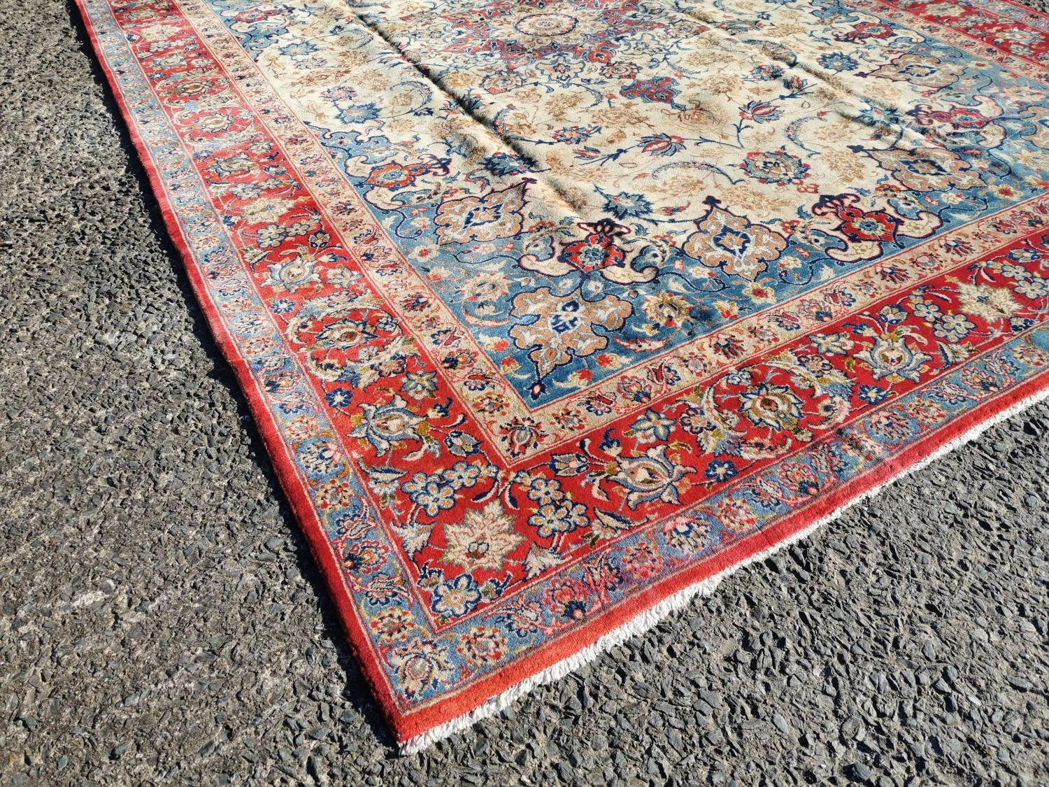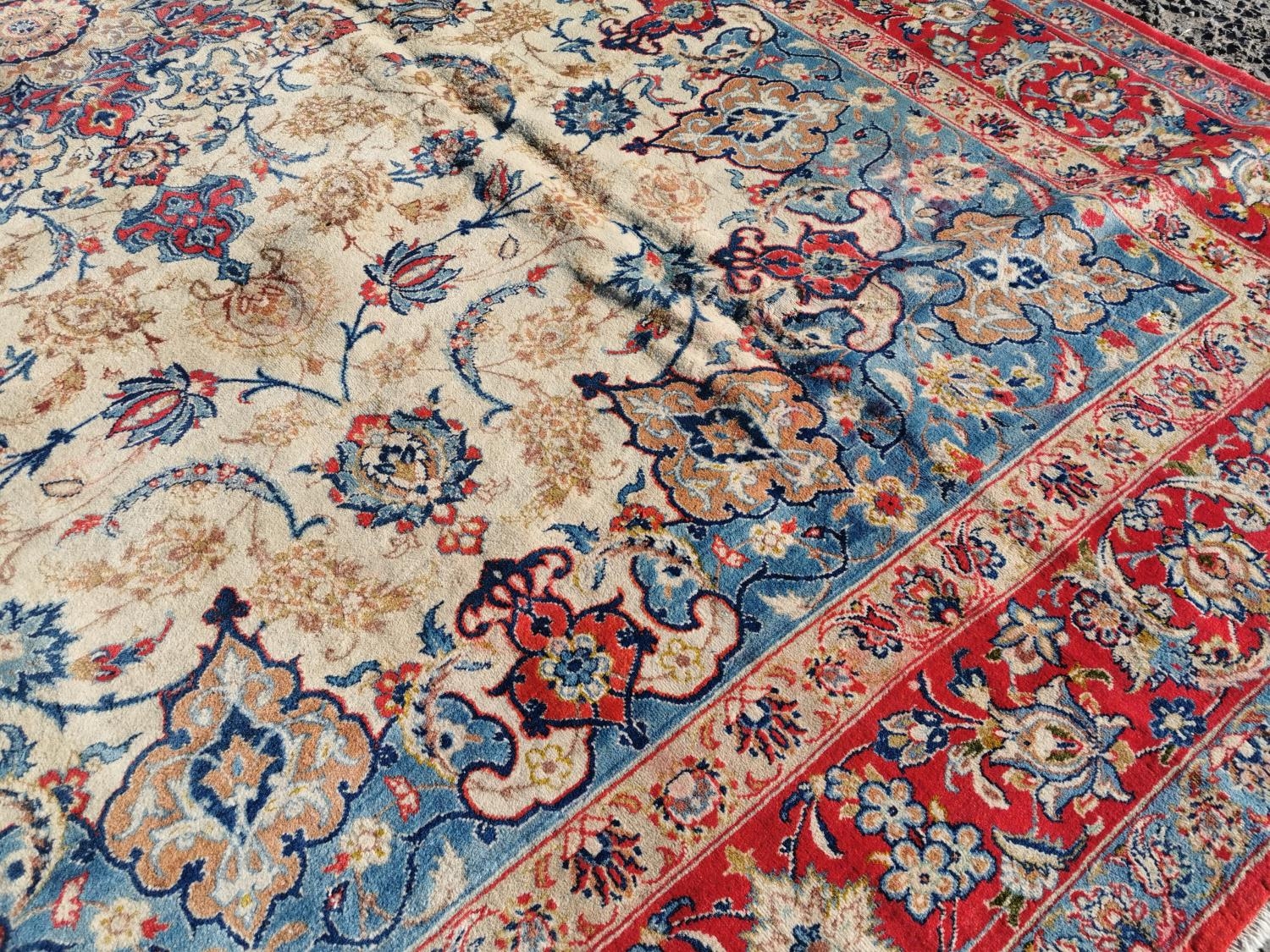 Good quality hand woven Persian carpet square {412 cm L x 294 cm W}.