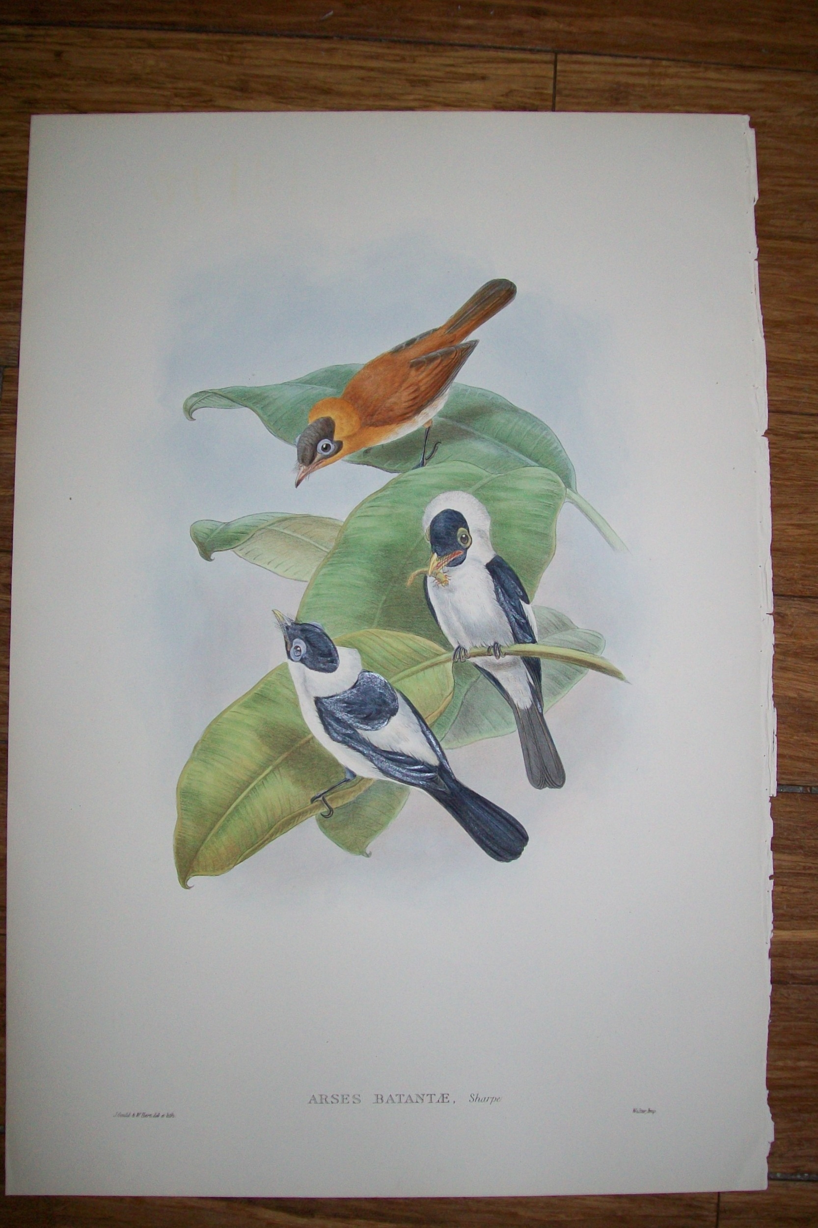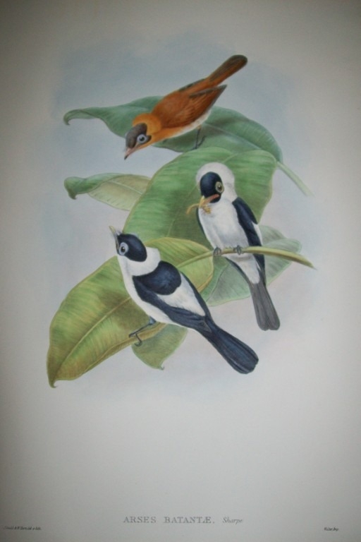 John Gould - Original lithograph of the Large Frilled-necked Flycatcher 1875-88. This original lithograph of a Large Frilled-necked Flycatcher (Arses batantæ) is from John Gould's The Birds of New Guinea, and the Adjacent Papuan Islands 1875-88. This plate is number 41 from volume 2 of this work and was drawn and lithographed by John Gould & William Hart.