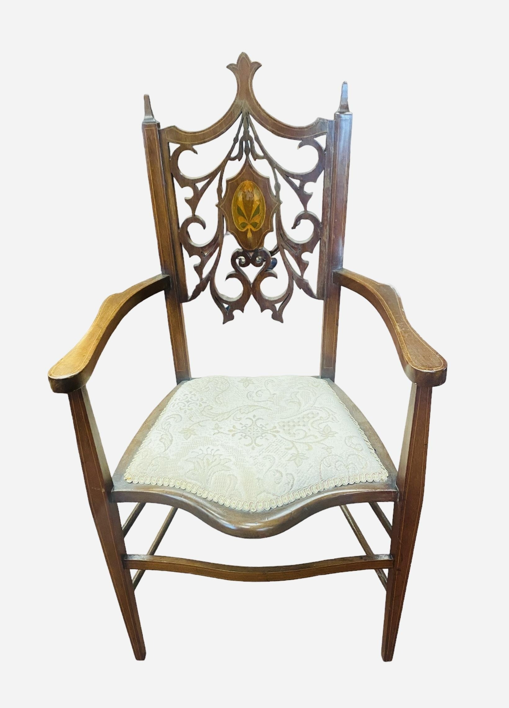 Art Nouveau Inlaid Mahogany Armchair 51cm W 50cm D 102cm H