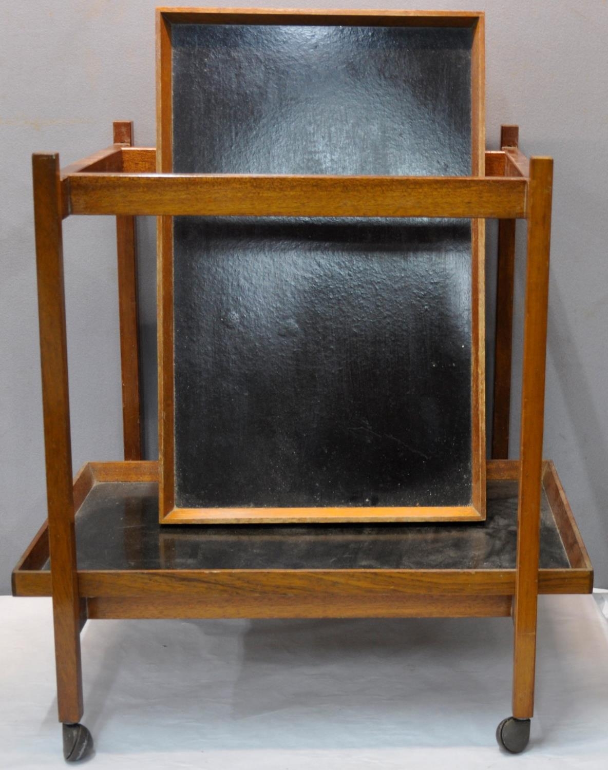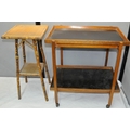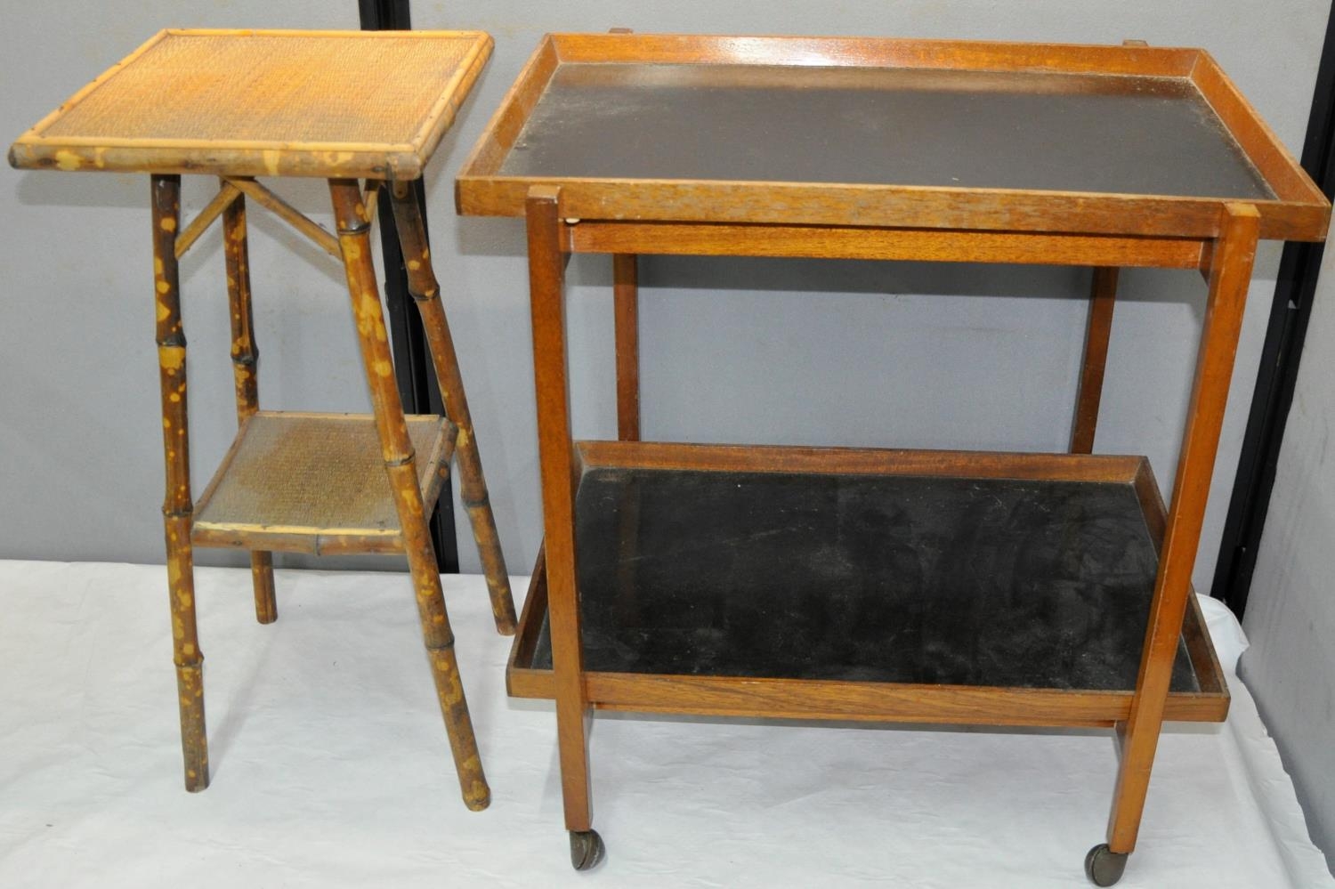 TEA TROLLEY WITH 2 DETACHABLE TRAYS AND SMALL BAMBOO SIDE TABLE