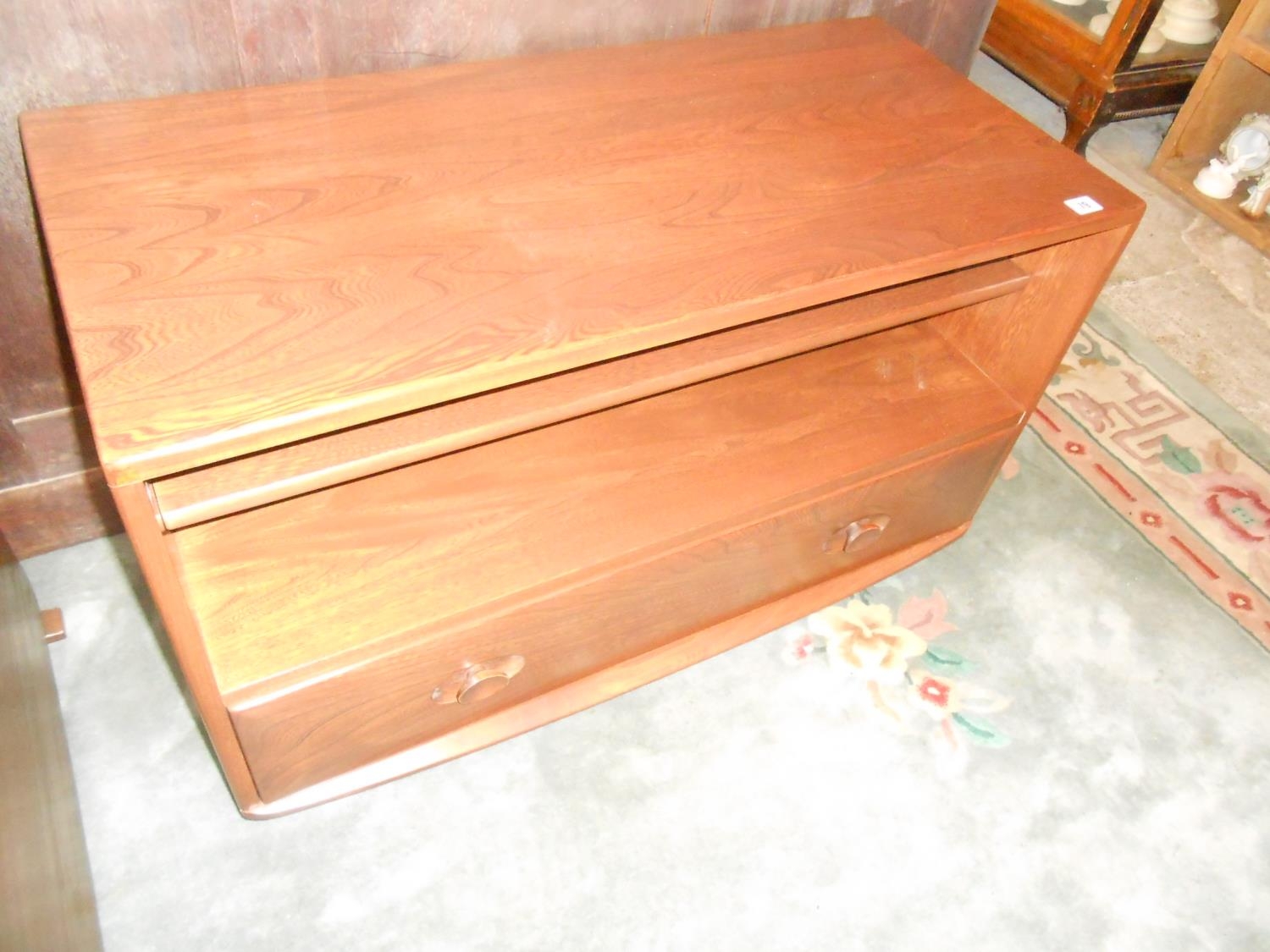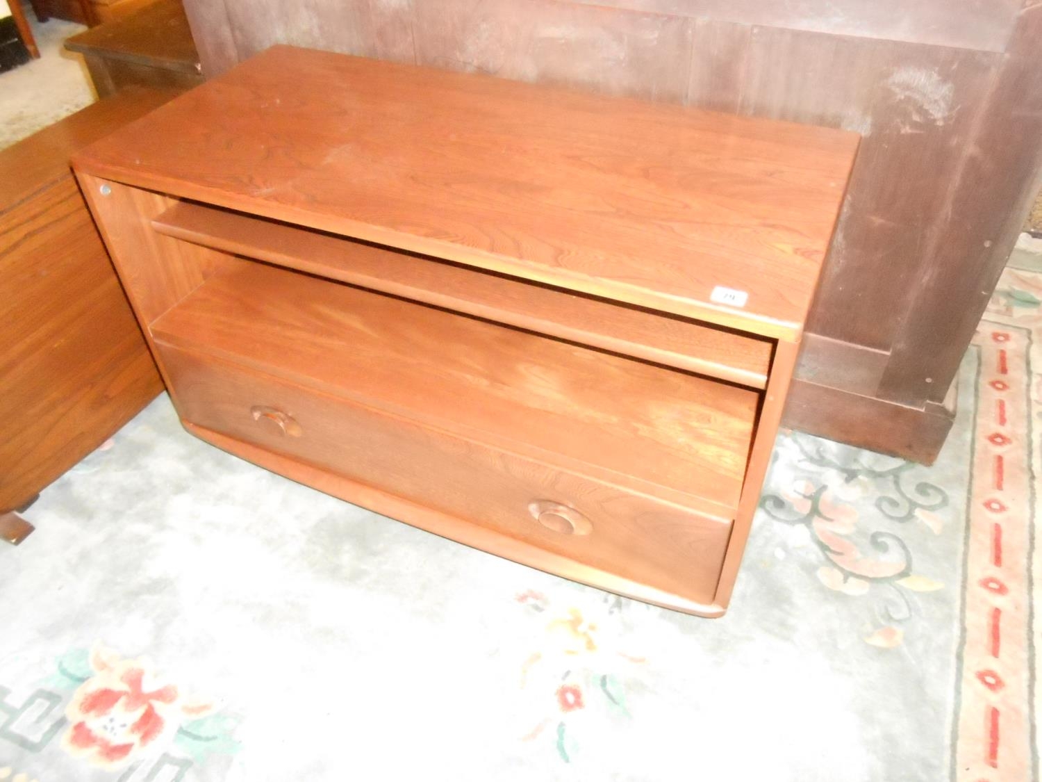 An Ercol dark elm television stand, the base fitted drawer -...