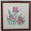 Abstract Acrylic on Silk, still life of Iris. No apparent signature. 27 x 27cm approx.