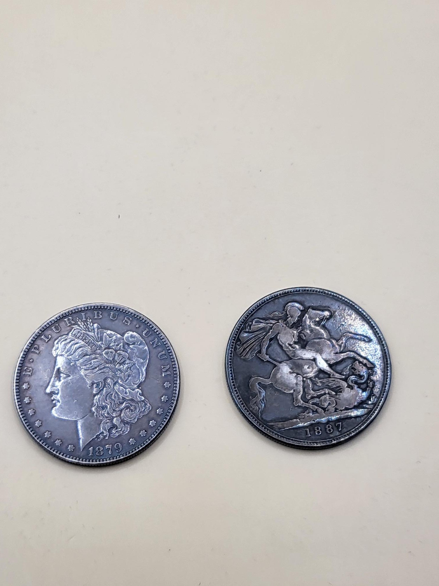 1879 American Silver One Dollar along with 1887 Silver Crown Both in Good Condition