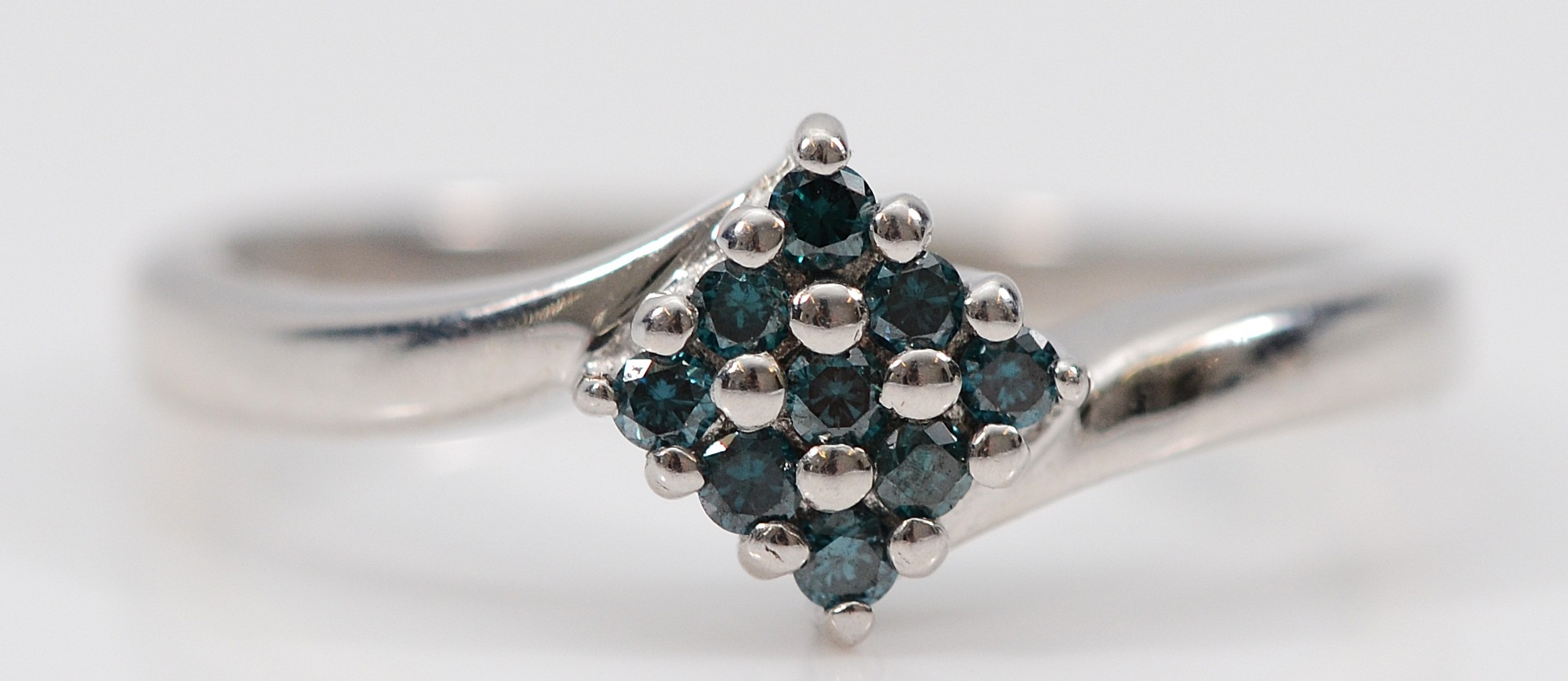 A 9ct white gold enhanced blue diamond dress ring, N, 2.1g