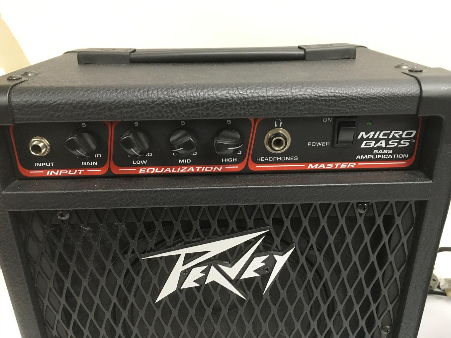 Two guitar amplifiers comprising a Vox Busker and a Peavey micro bass amp.