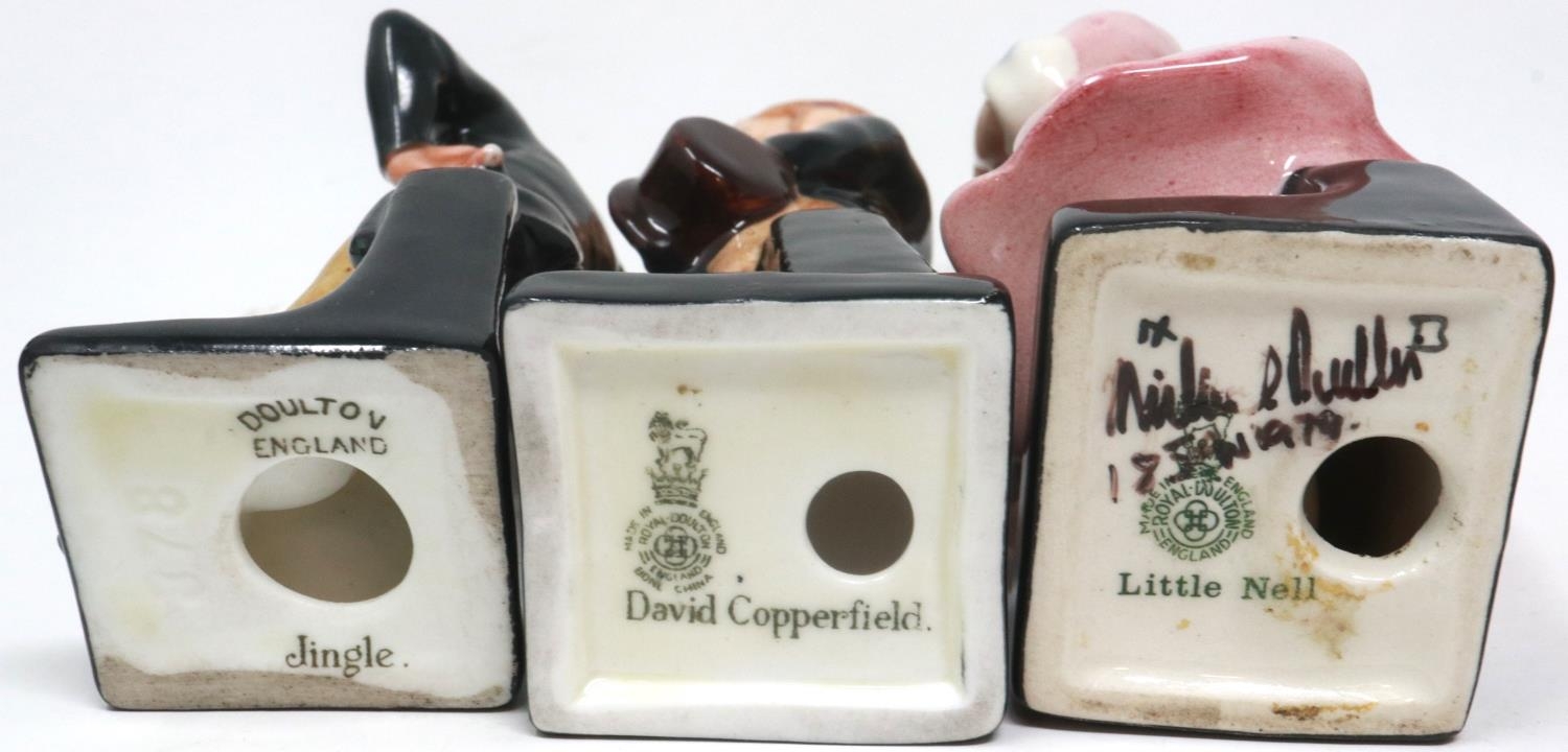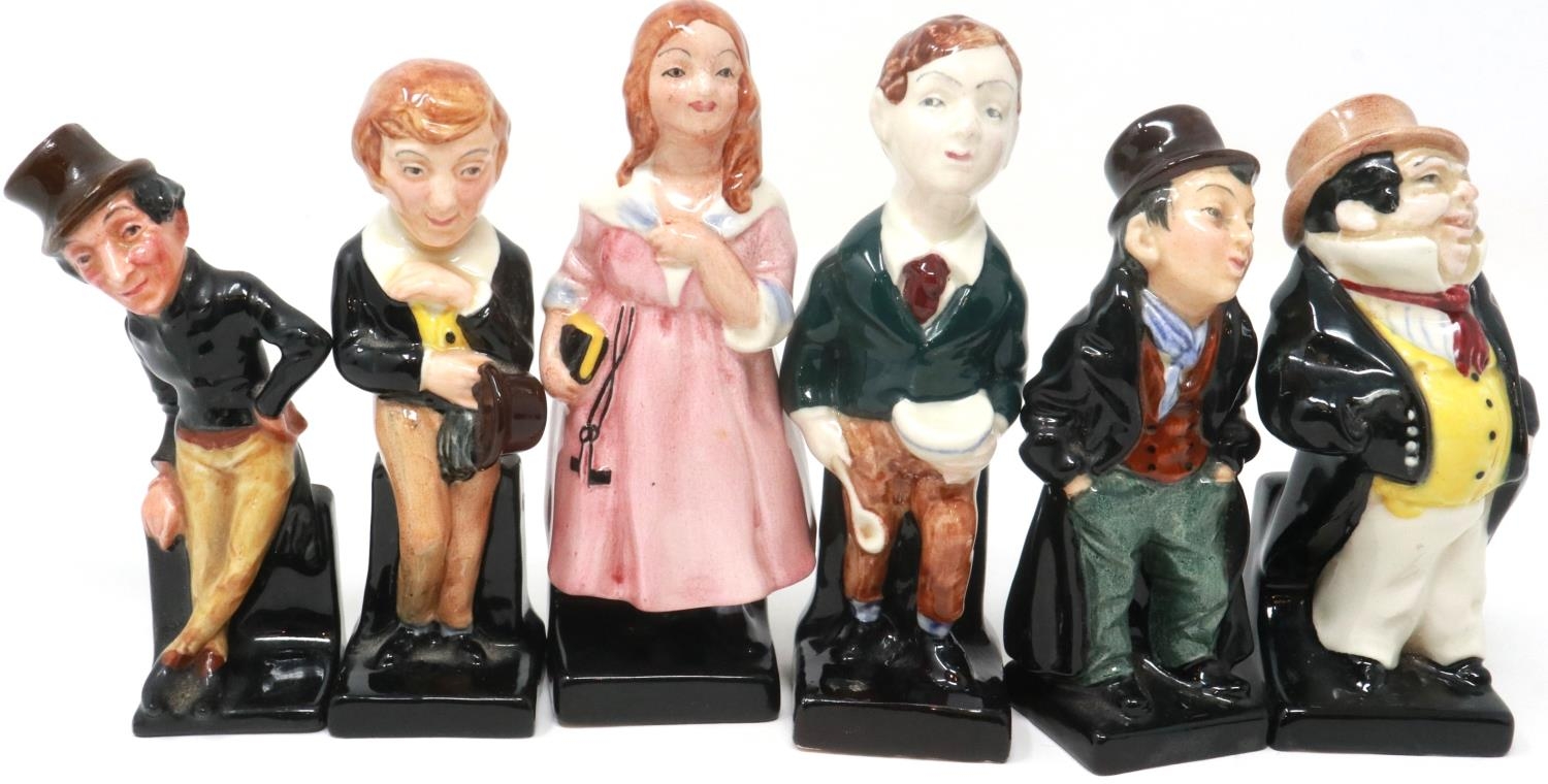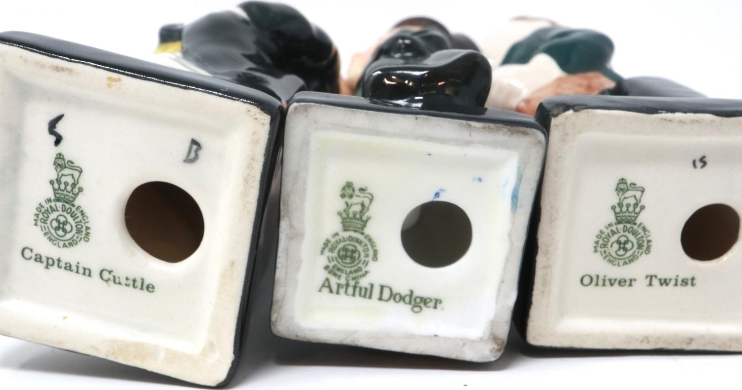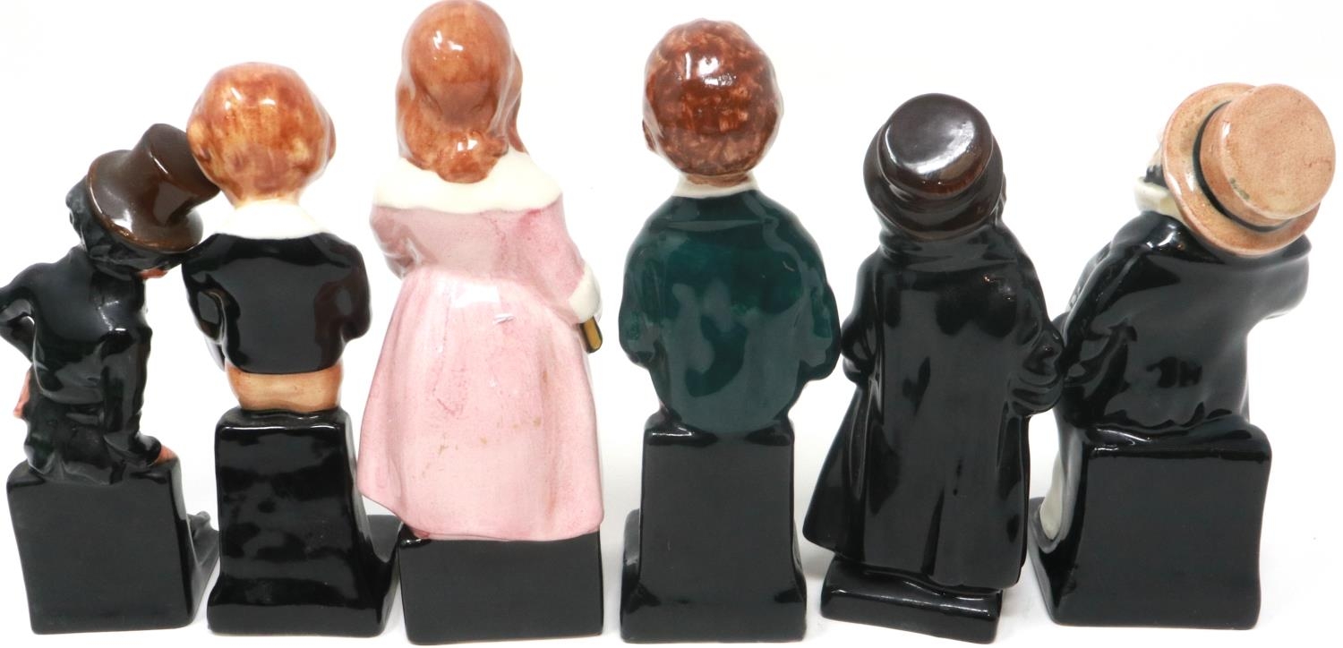 Six Royal Doulton Dickens Series miniature figurines including Artful Dodger and Oliver Twist, largest H: 12 cm, no cracks or chips. P&P Group 2 (£18+VAT for the first lot and £3+VAT for subsequent lots)