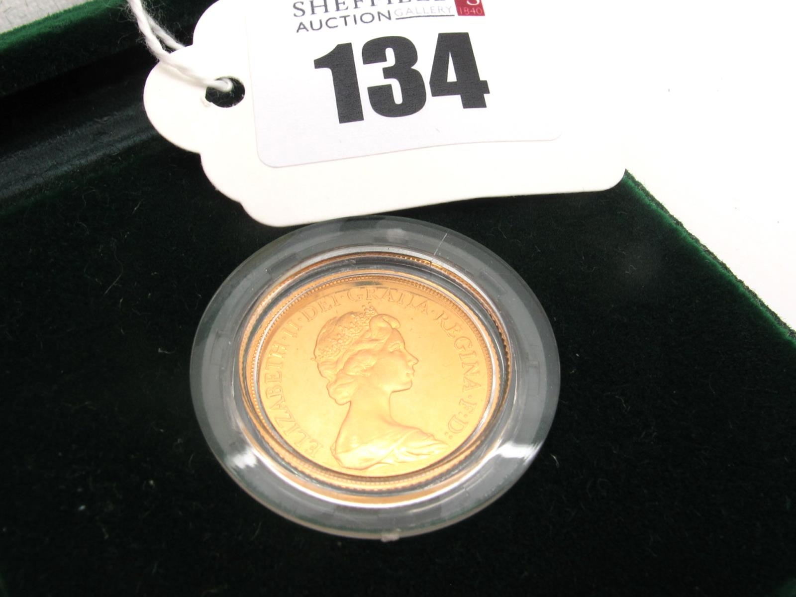 A Queen Elizabeth II Proof Sovereign, 1980, in capsule and original case of issue.