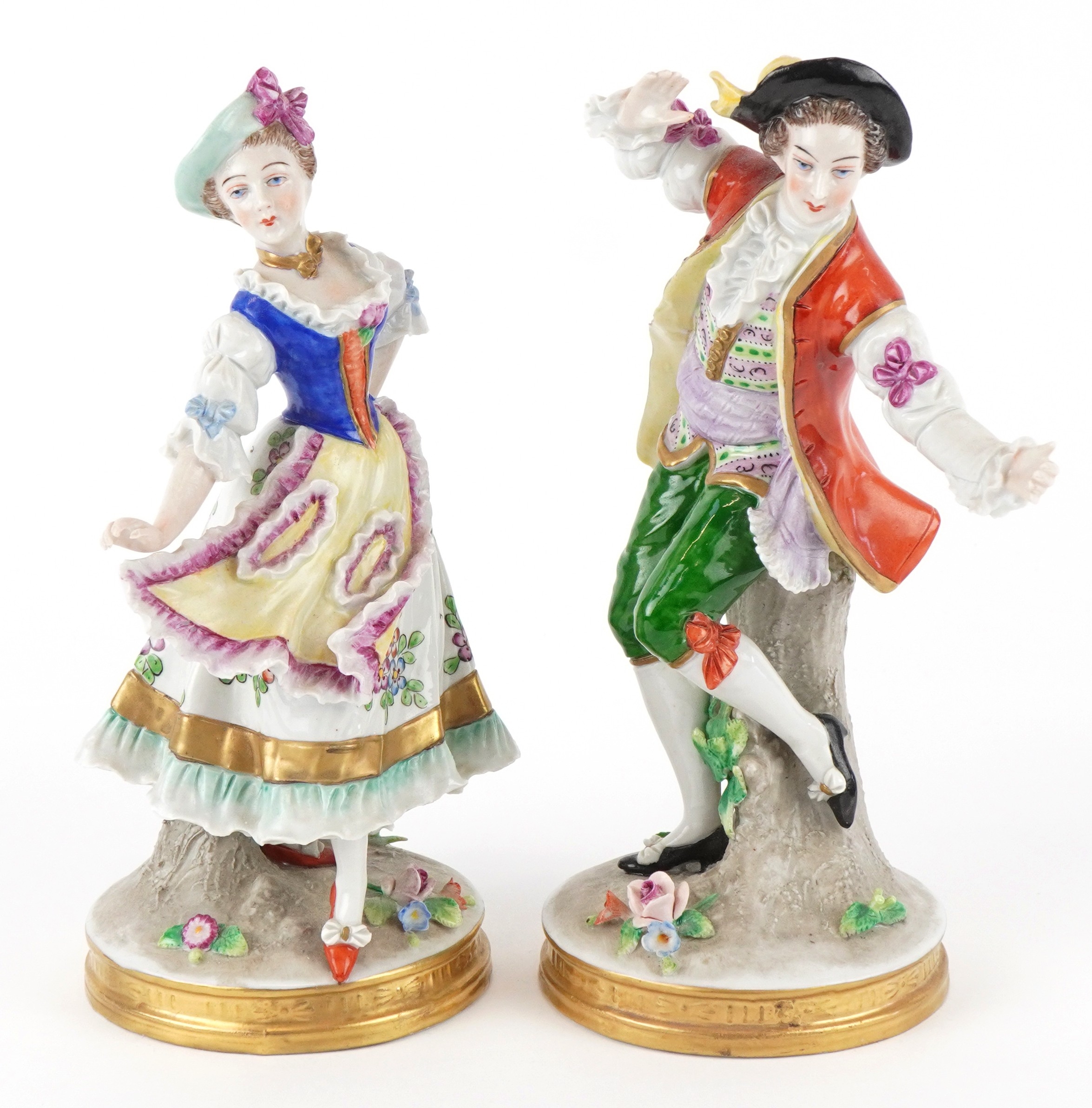 Two early 20th century Sitzendorf porcelain figures of a male and female, the largest 19cm high.