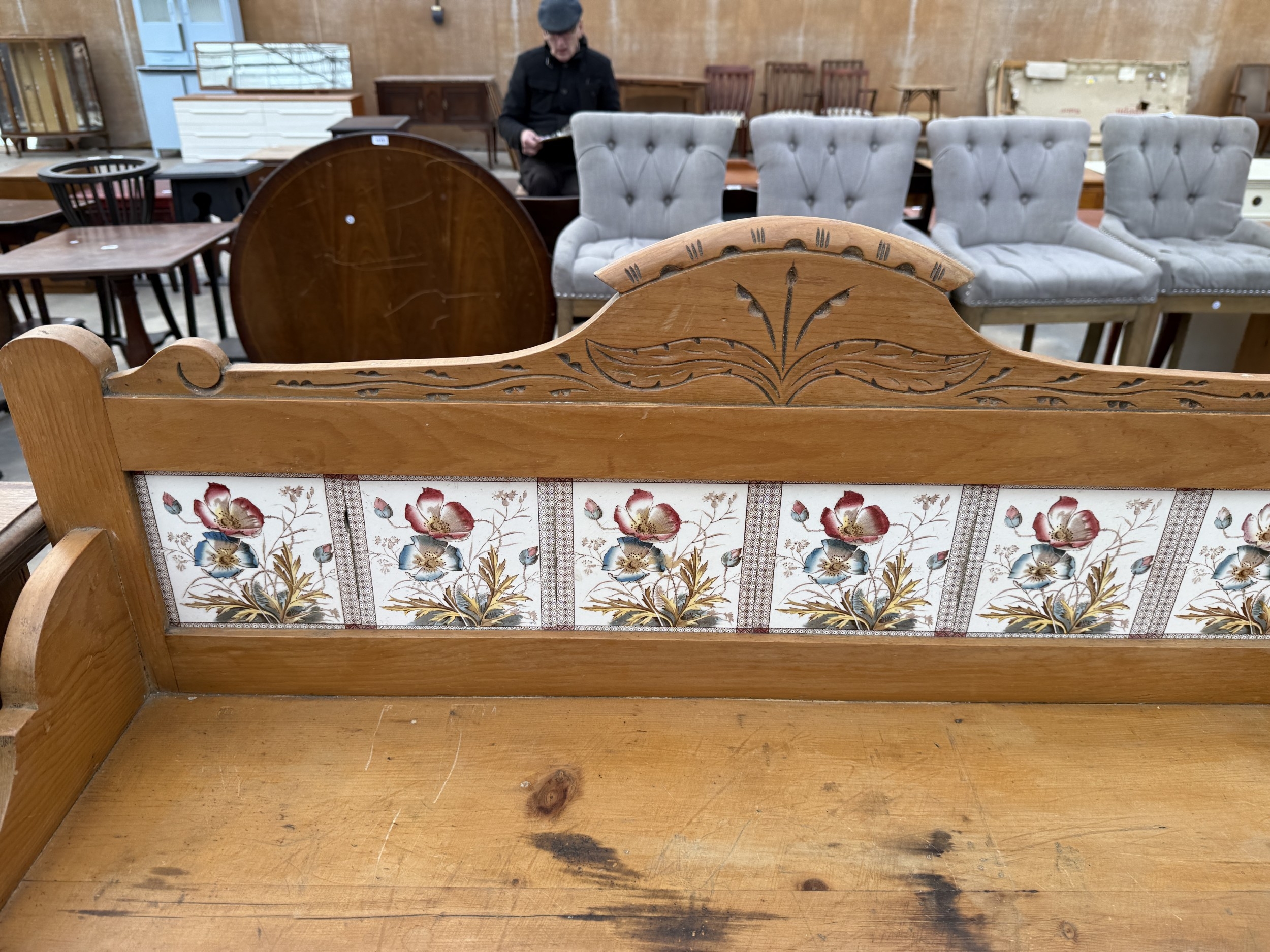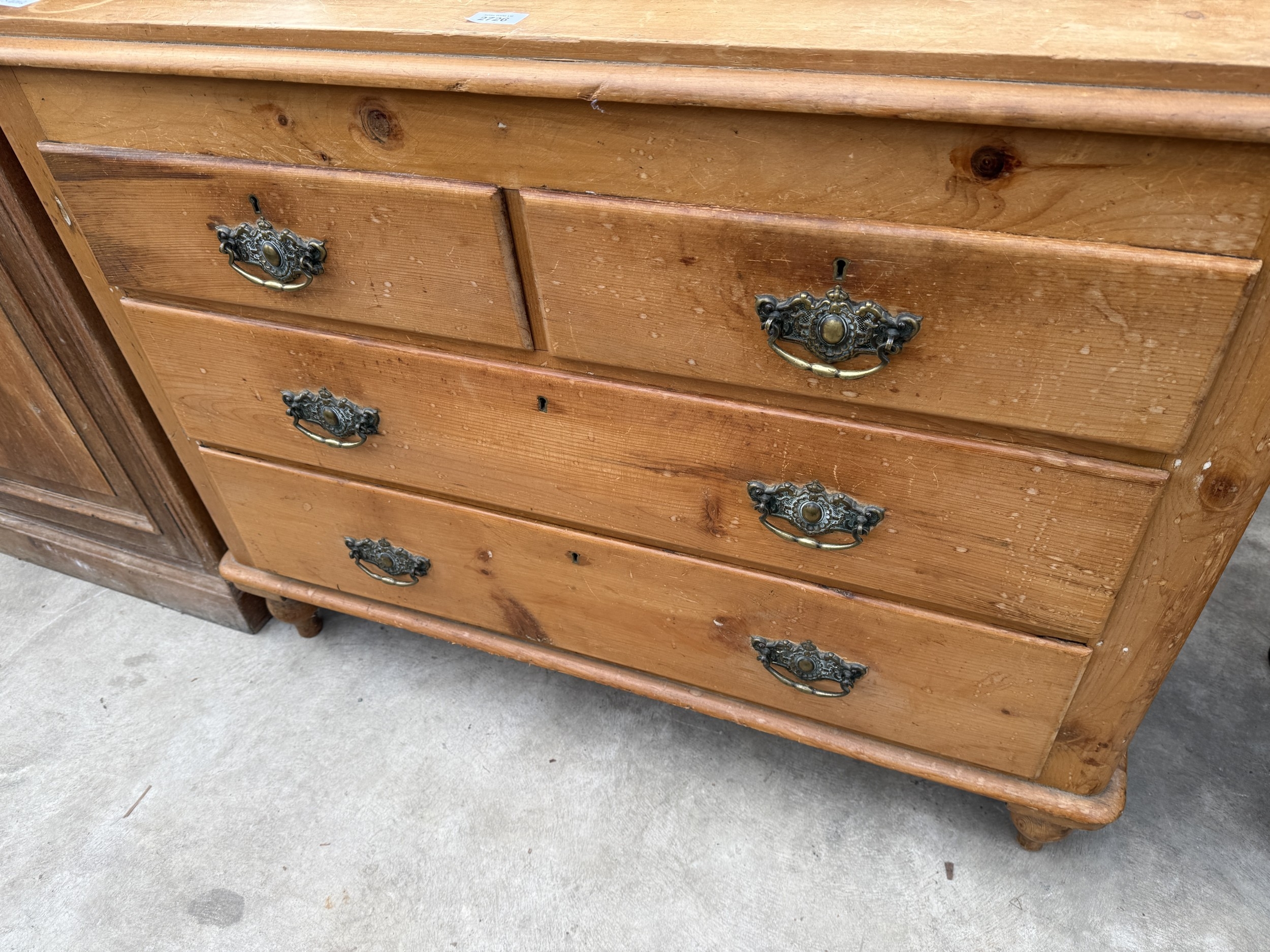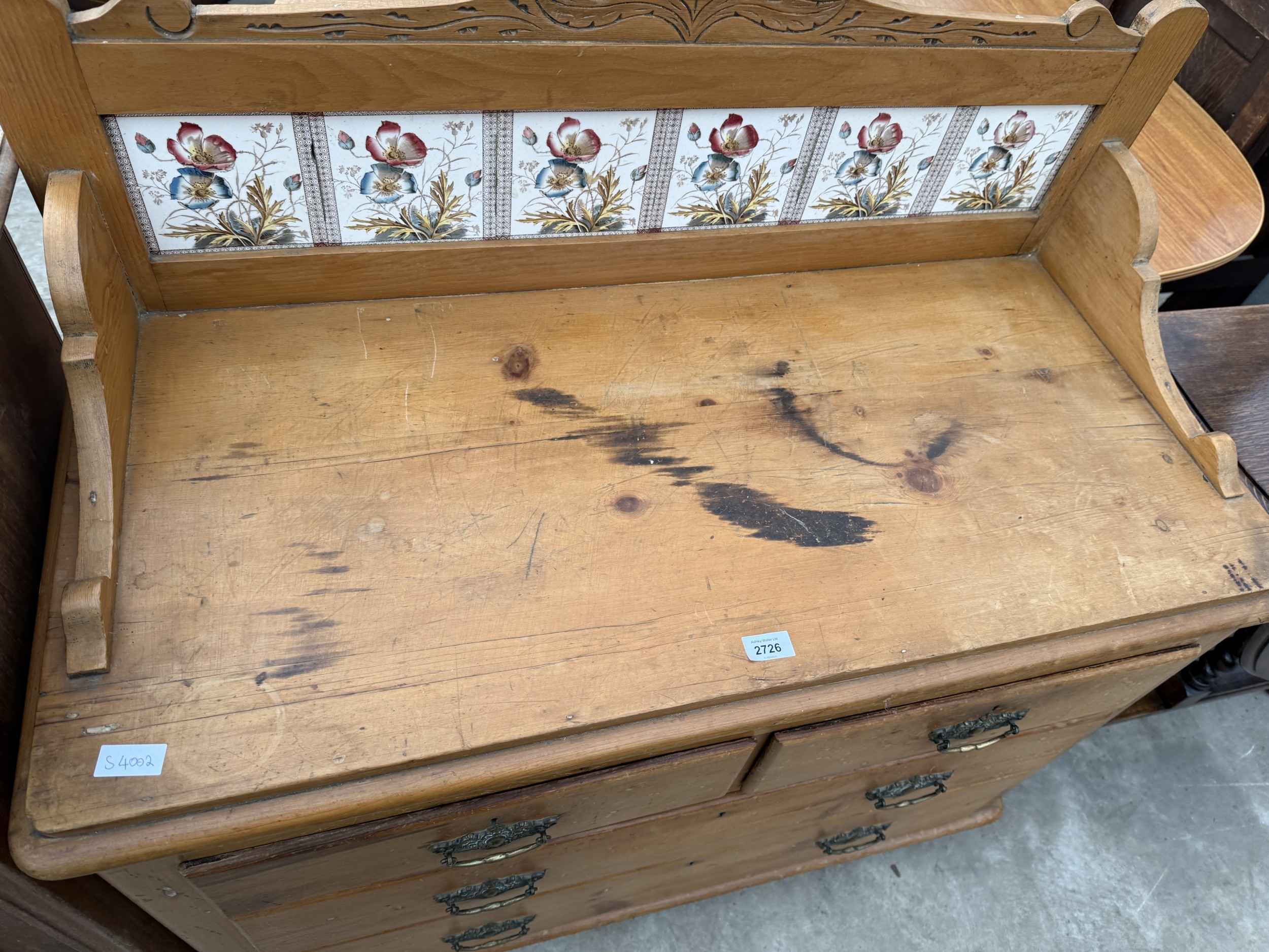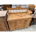 A VICTORIAN PINE CHEST OF TWO SHORT AND TWO LONG DRAWERS WITH TILED GALLERY BACK, 42" WIDE