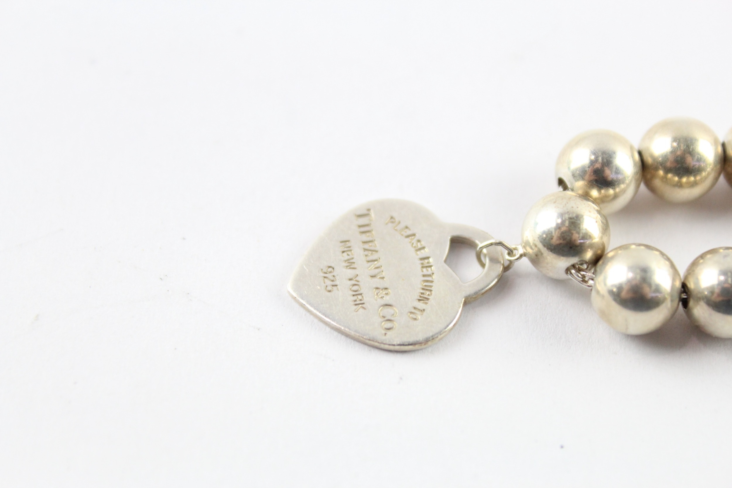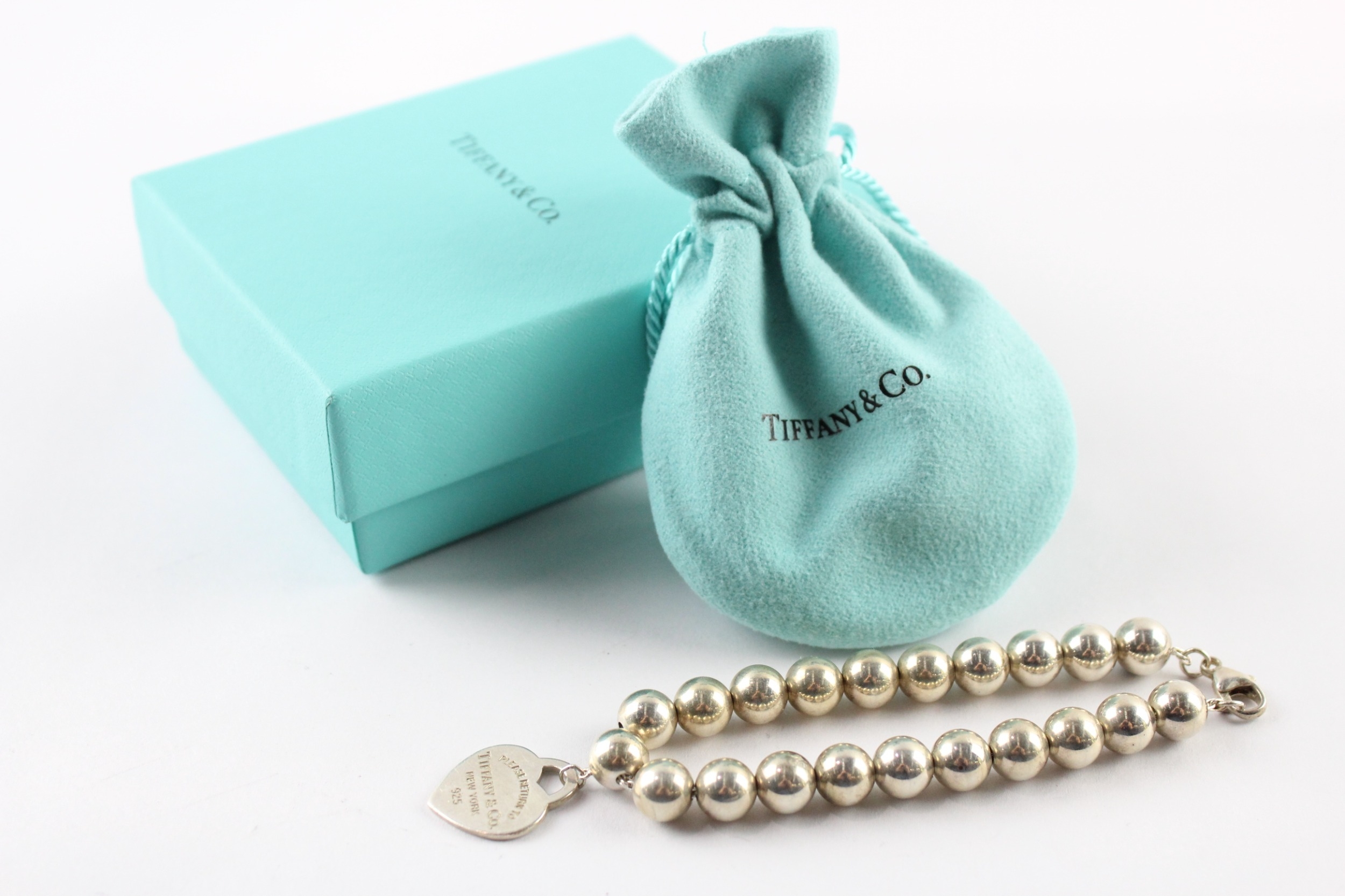 Tiffany & Co Sterling Silver Ball Beaded Bracelet inc. Heart Charm, Box 16g