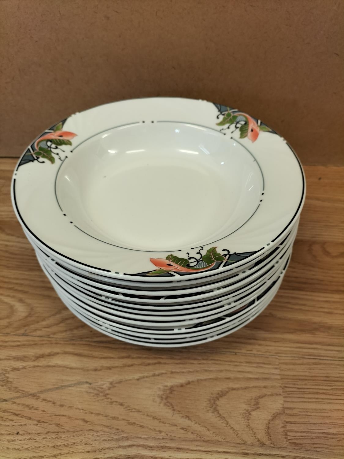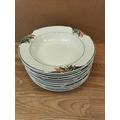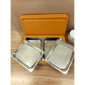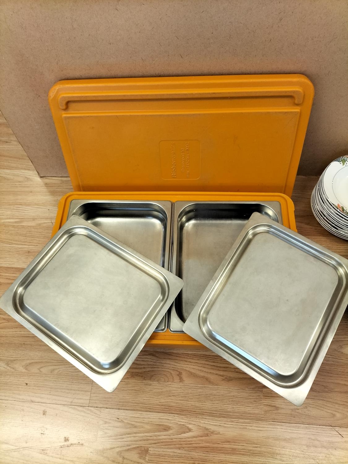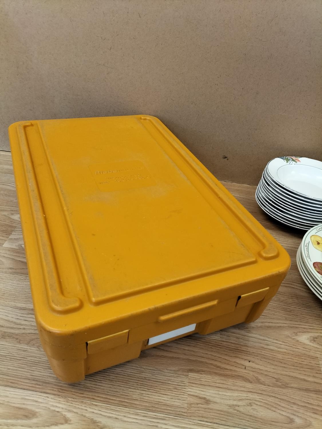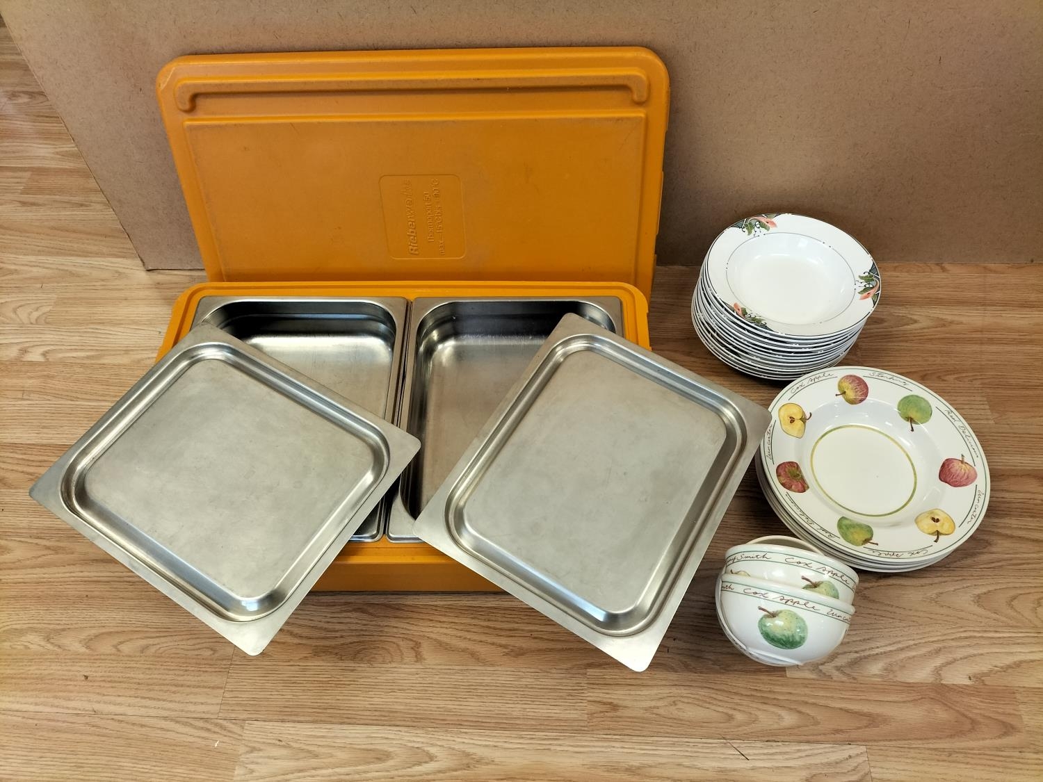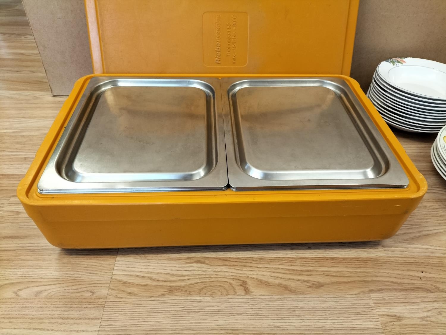 Rieber Thermoport 50 Food Transport Box with Lidded Stainless Steel Containers plus Dudson China 21.5cm Bowls (12) and 9 x Bowls in a Fruit Pattern.