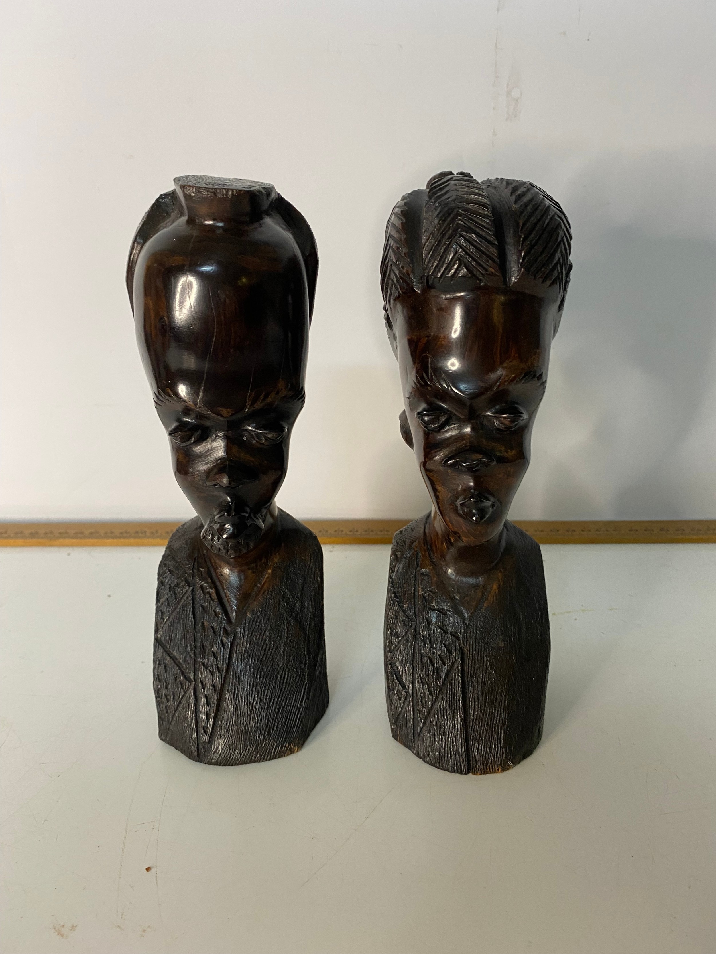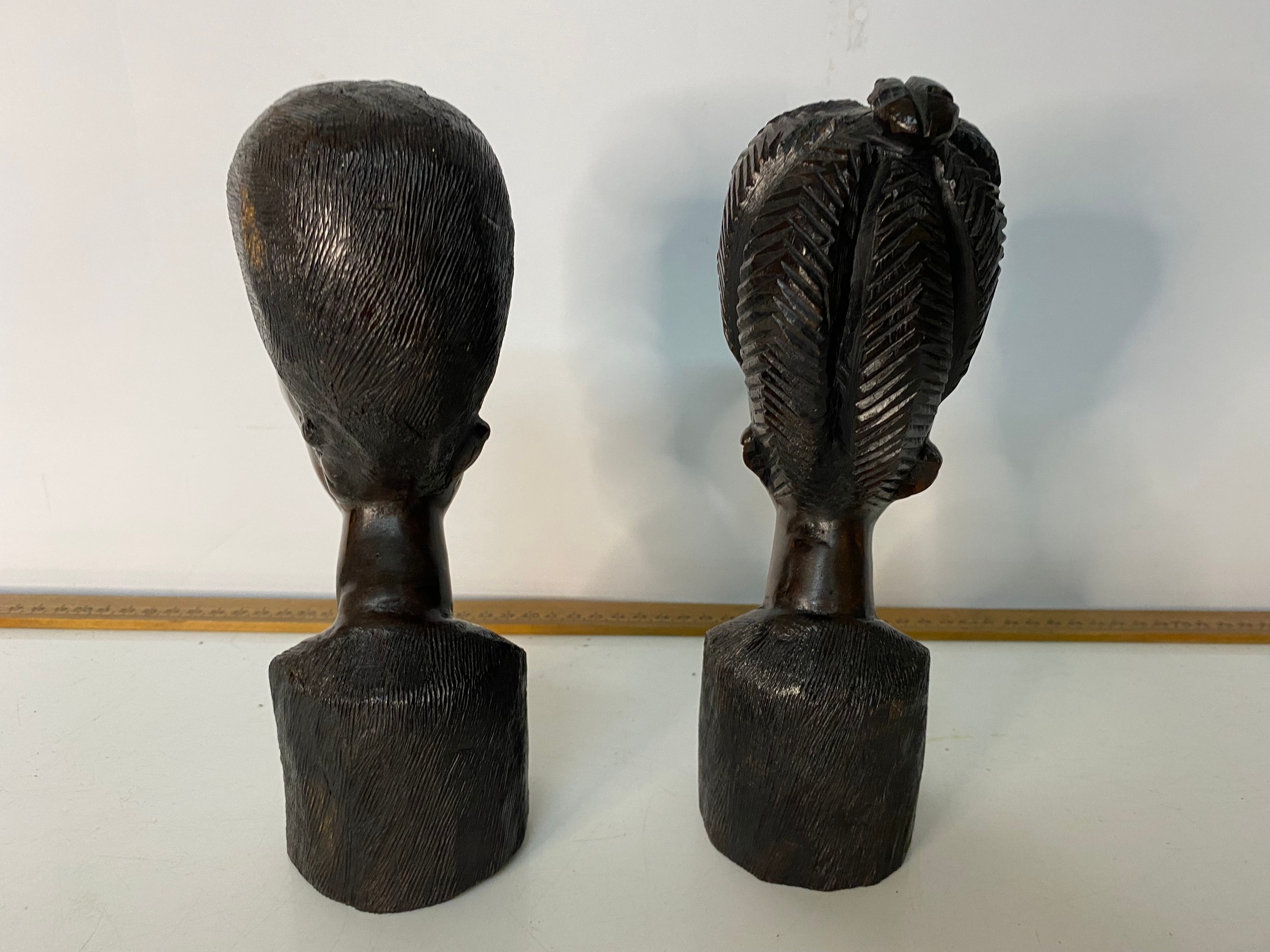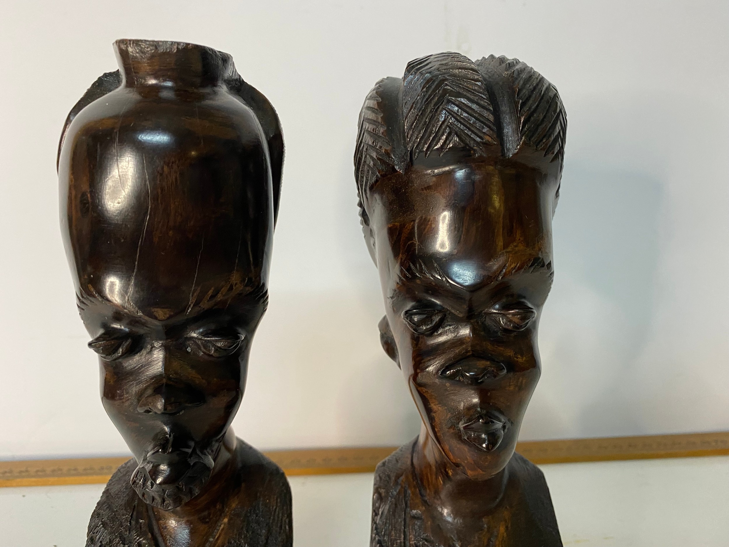 Pair of hand carved African Tribal busts measuring 22 cms tall