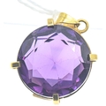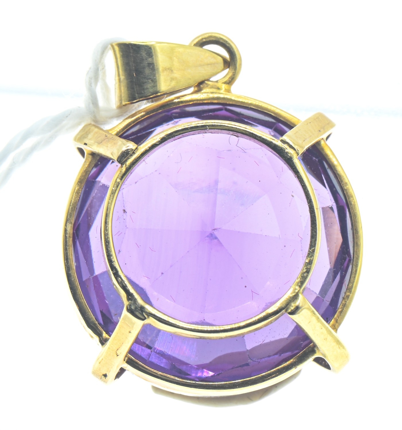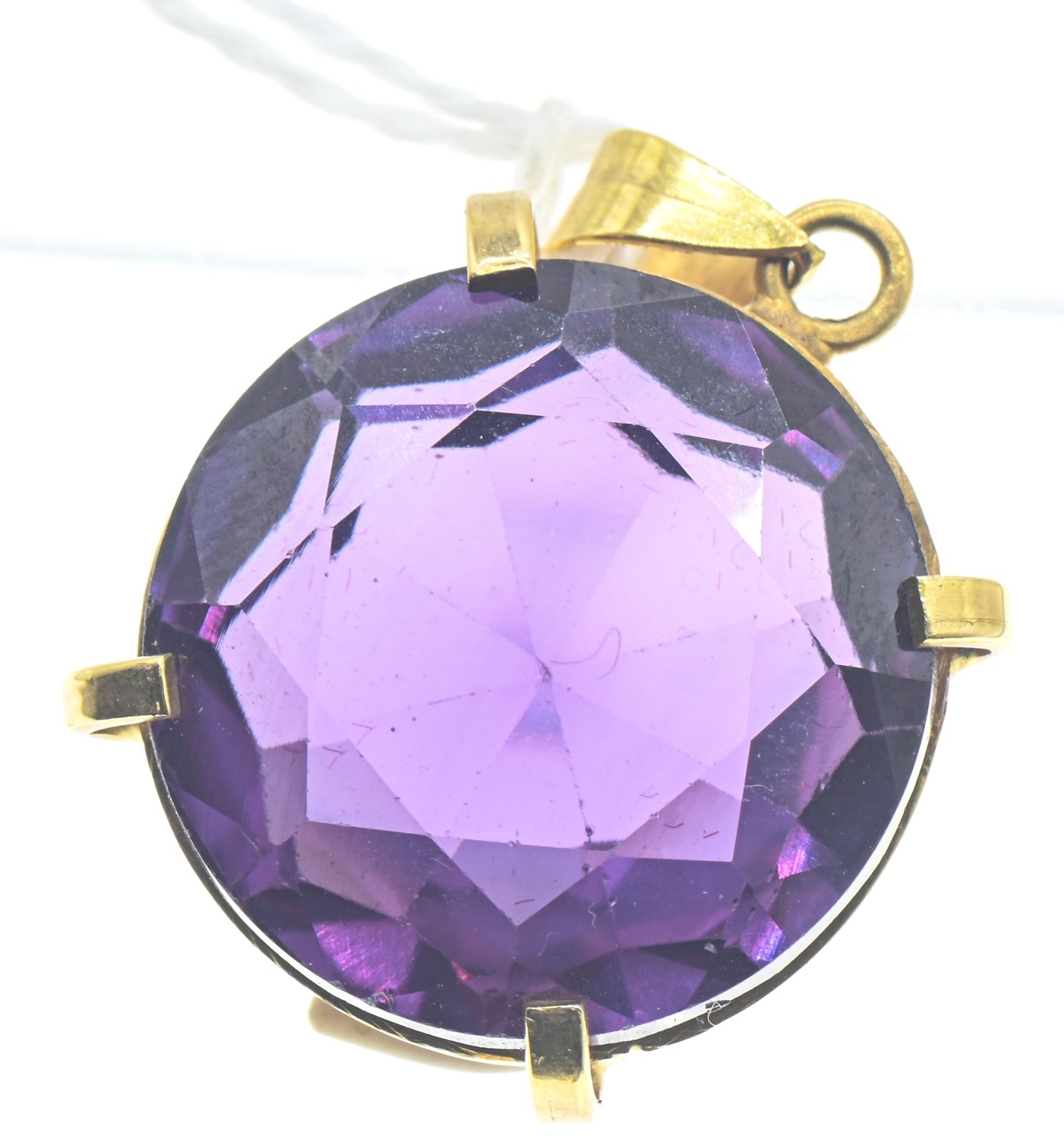 Synthetic purple sapphire pendant, the yellow metal mount with Egyptian marks for 18ct gold, length 28mm, gross weight 7.63 grams
