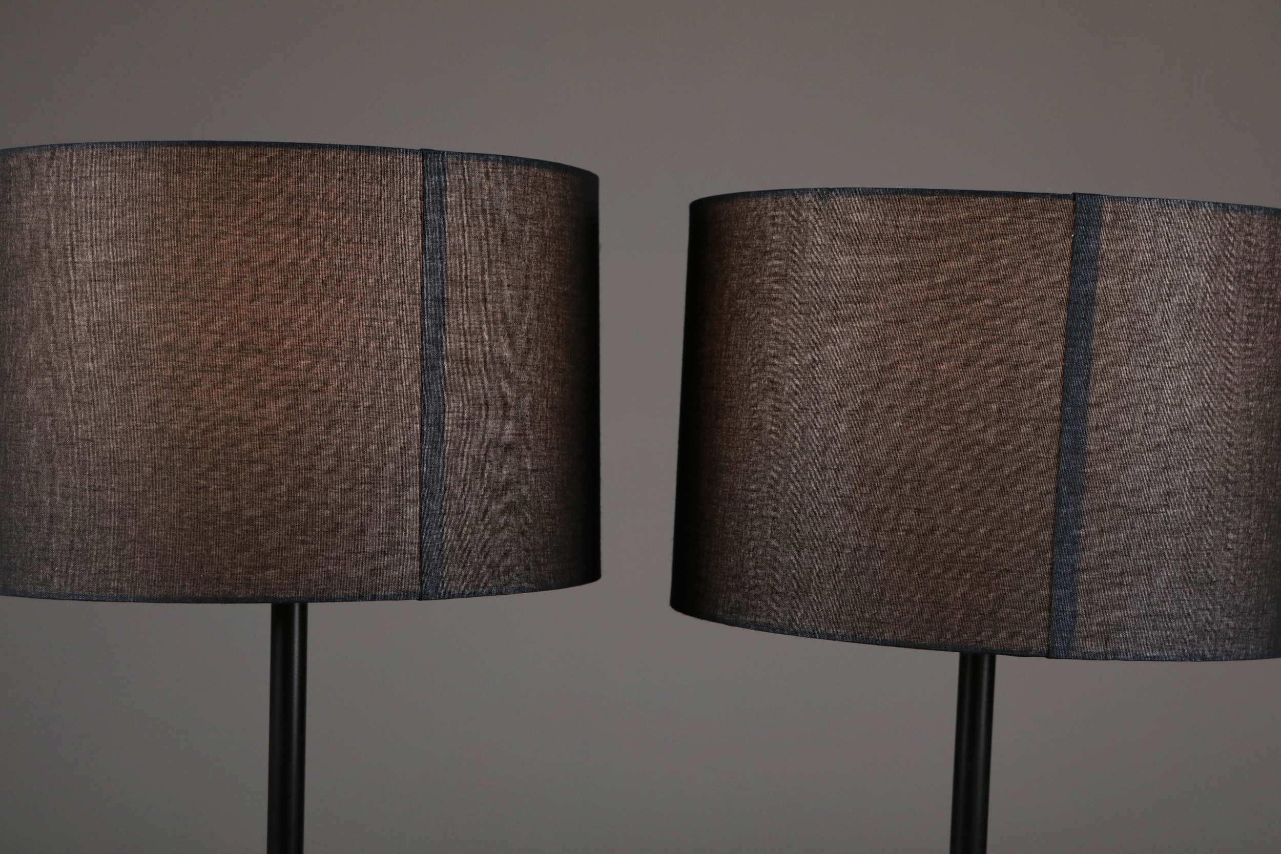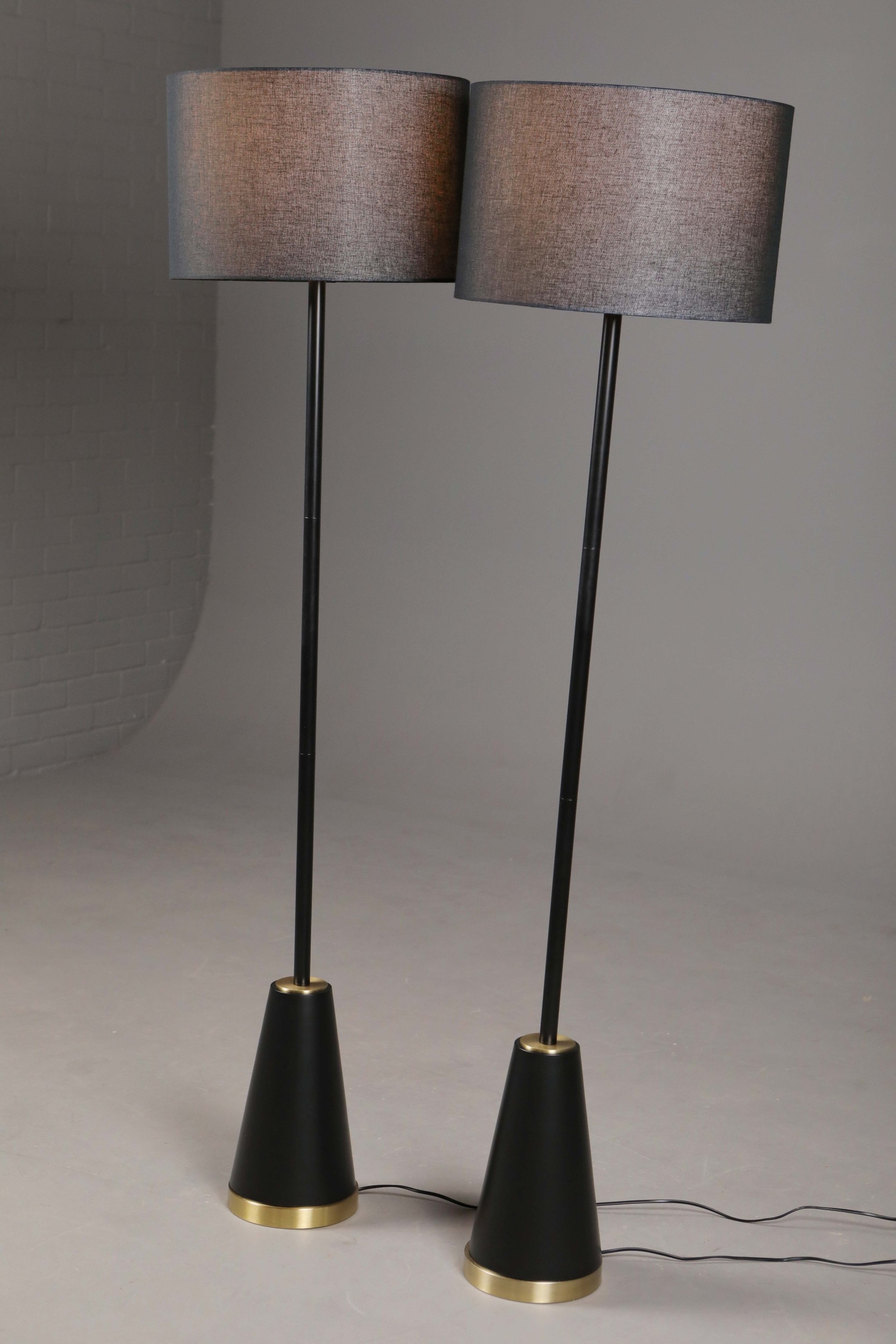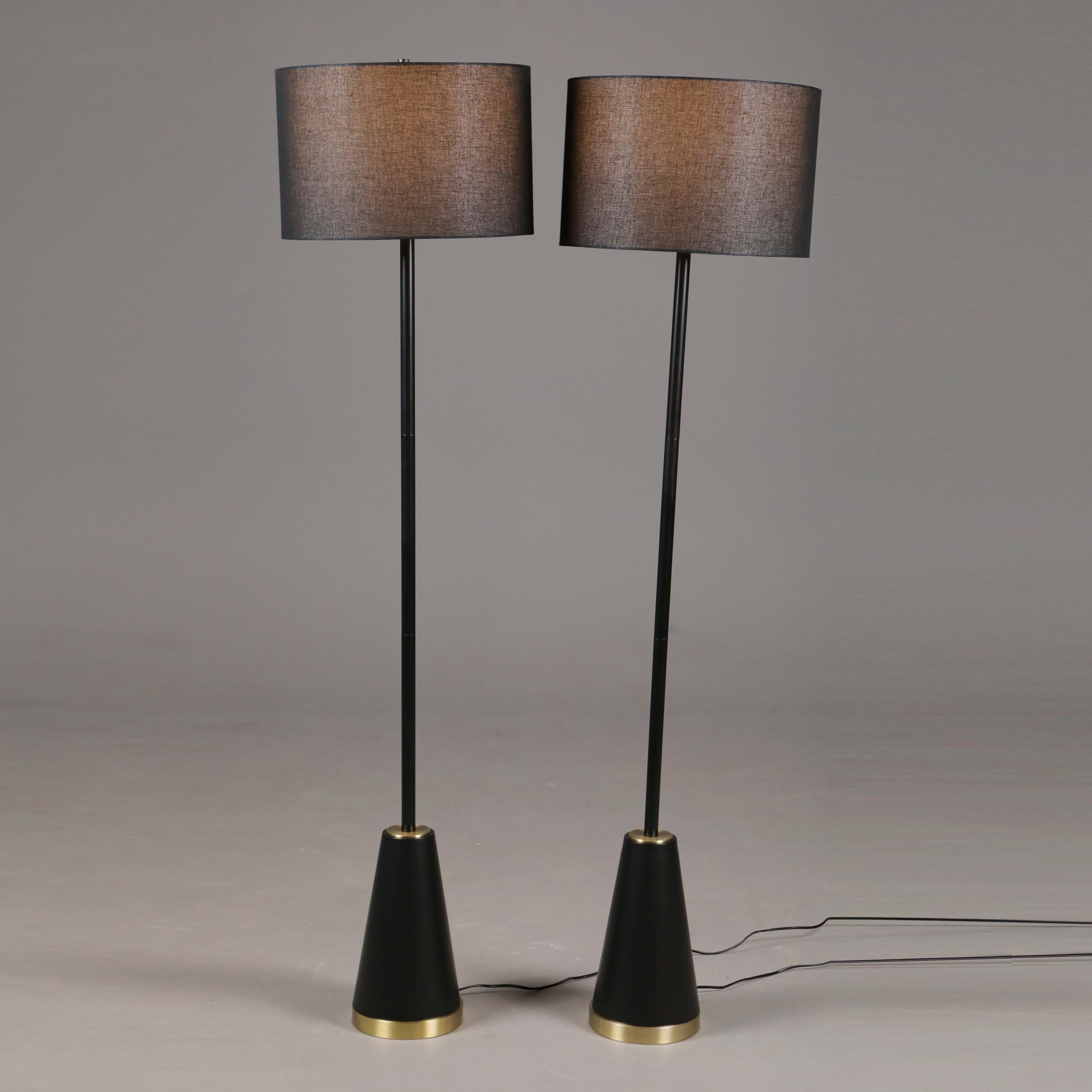 FLOOR LAMPS, A PAIR. with shades, 170cm H each approx. (2).
