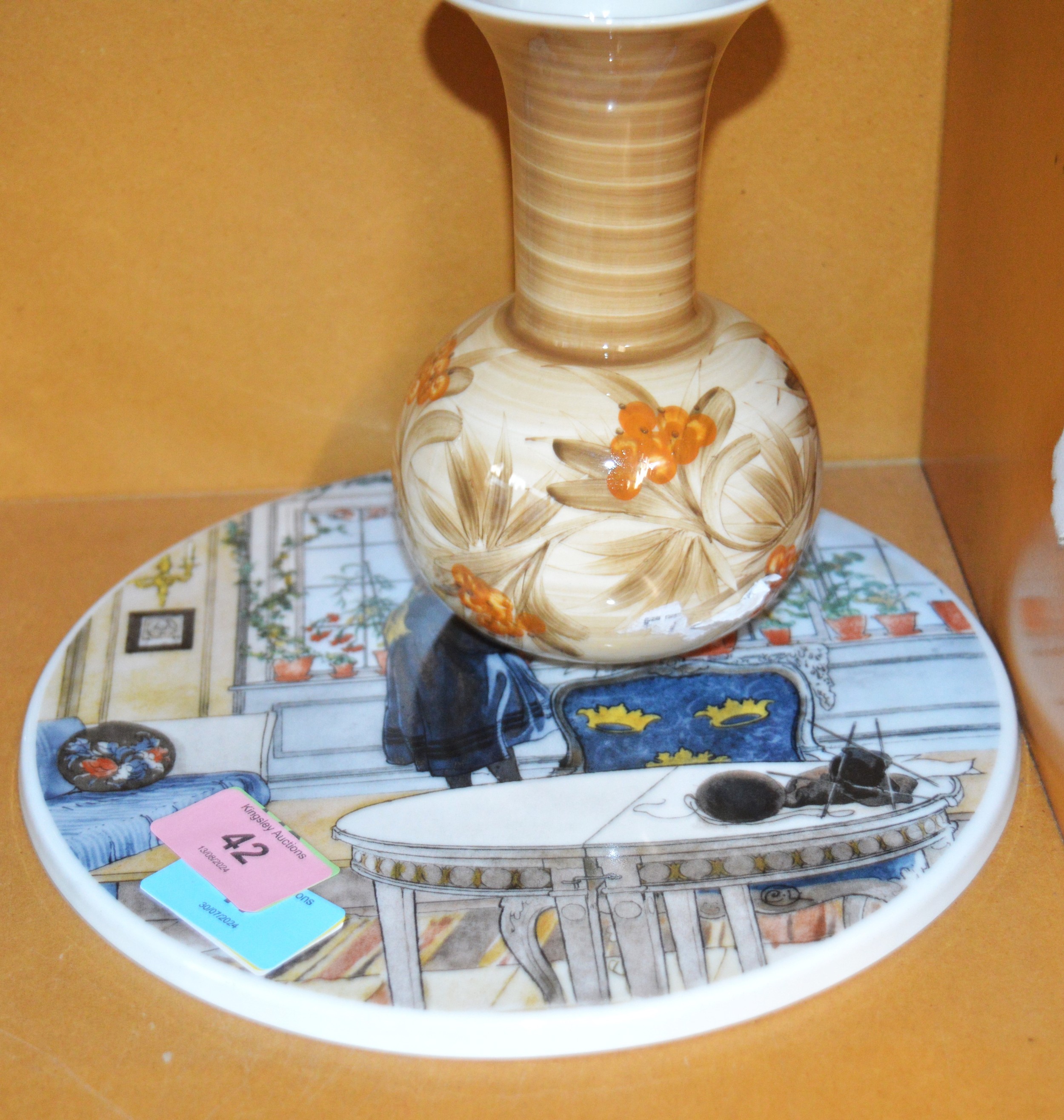 Royal Copenhagen Pot Stand "Flowers on the Windowsill", Plus a Jersey Pottery Vase