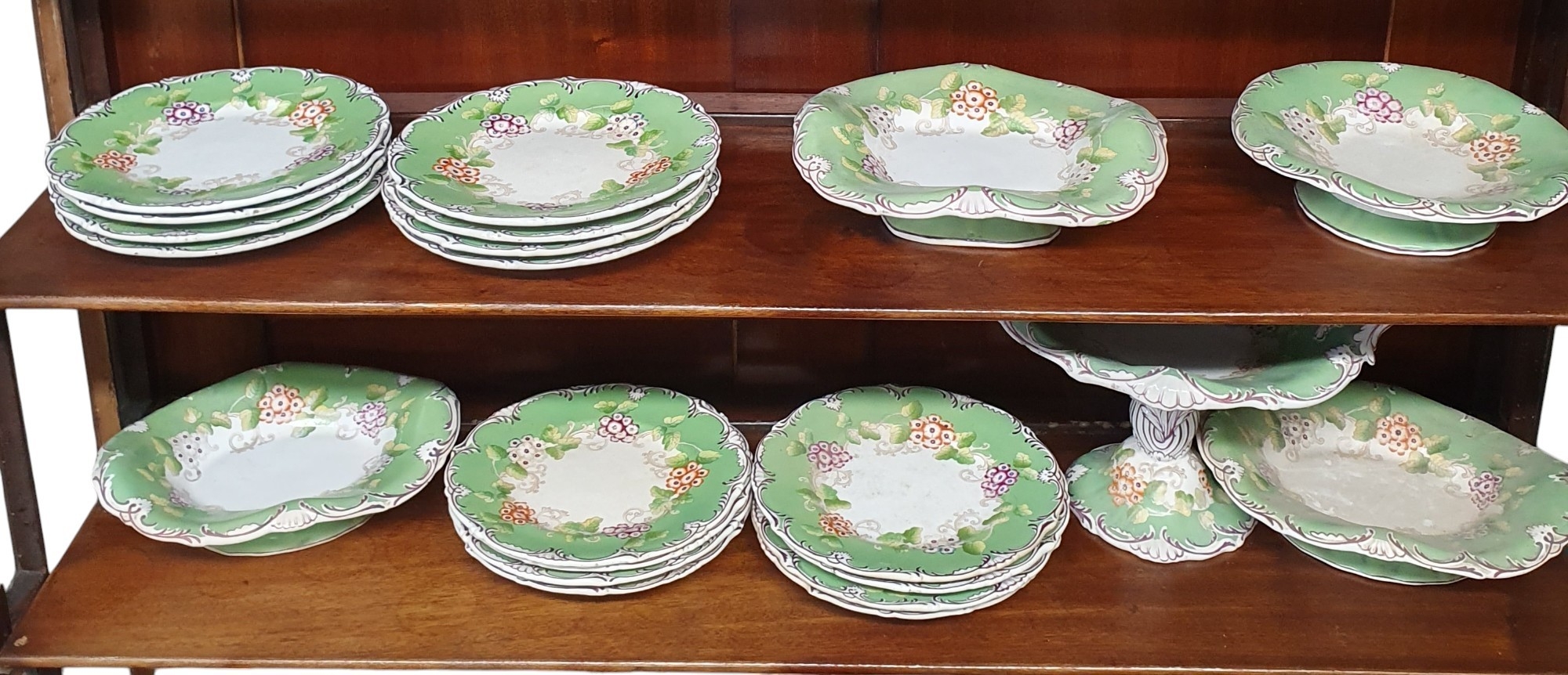 A good quantity of 19th Century Ironstone Wares. with cream and green ground pattern. TB 21 cm approx.