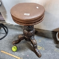 A profusely carved Victorian mahogany piano stool.