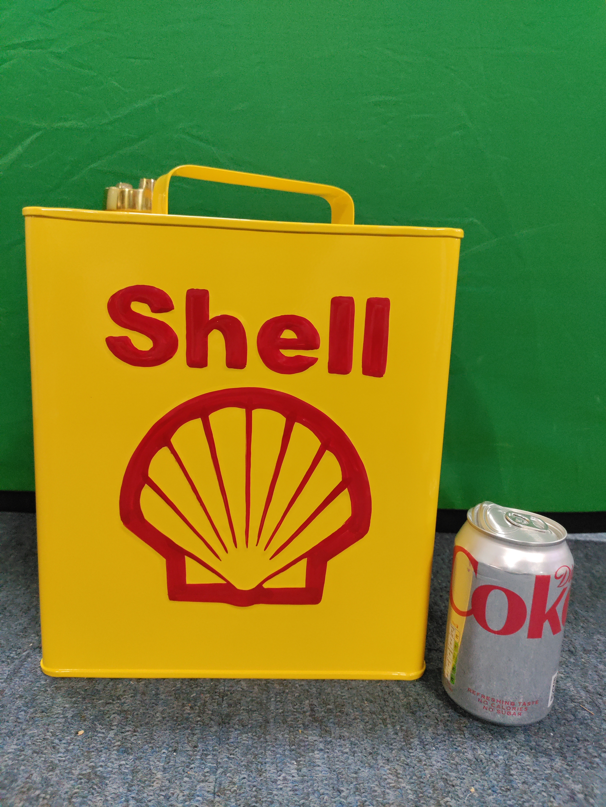 A metal "shell" fuel can.