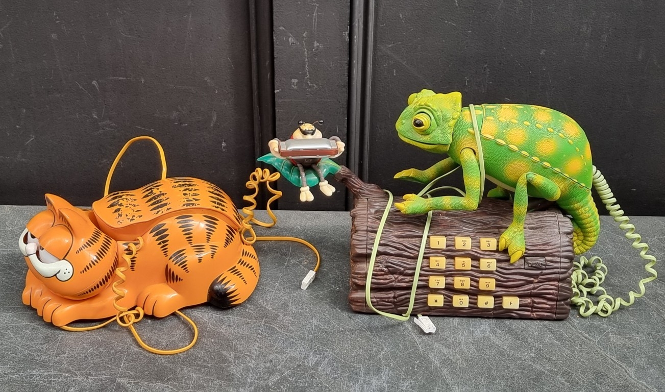 Two novelty telephones, comprising 'Garfield'; and 'Karma Chameleon' examples. (2)