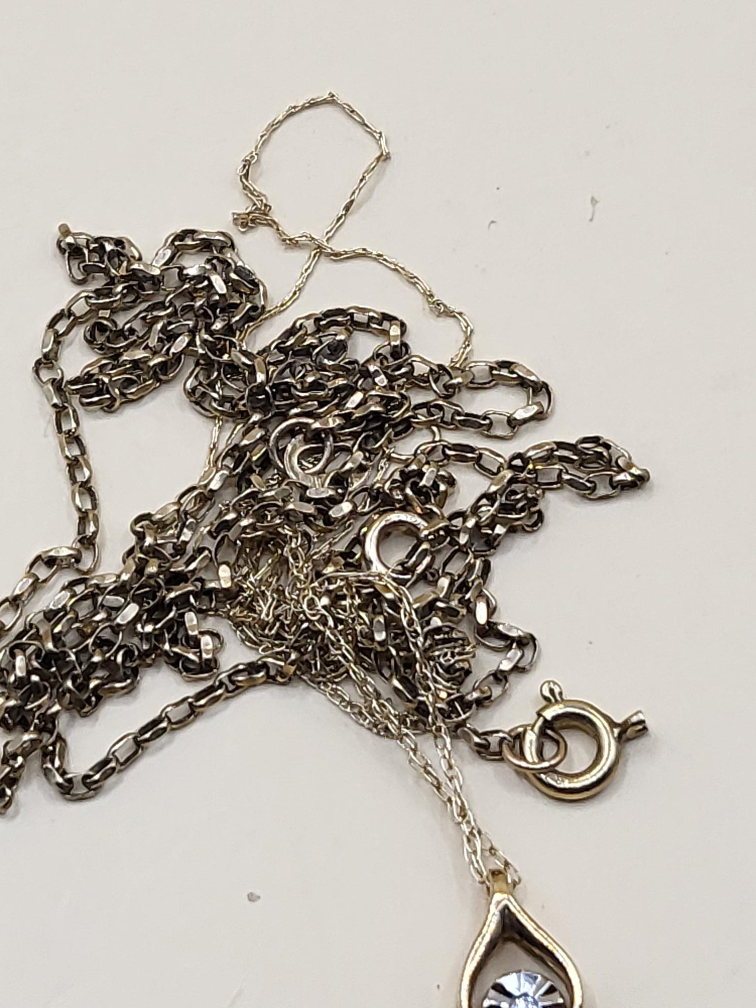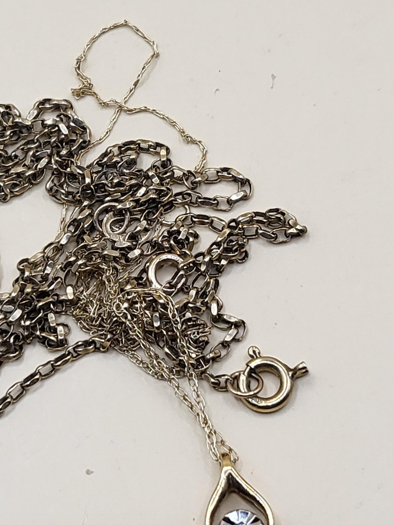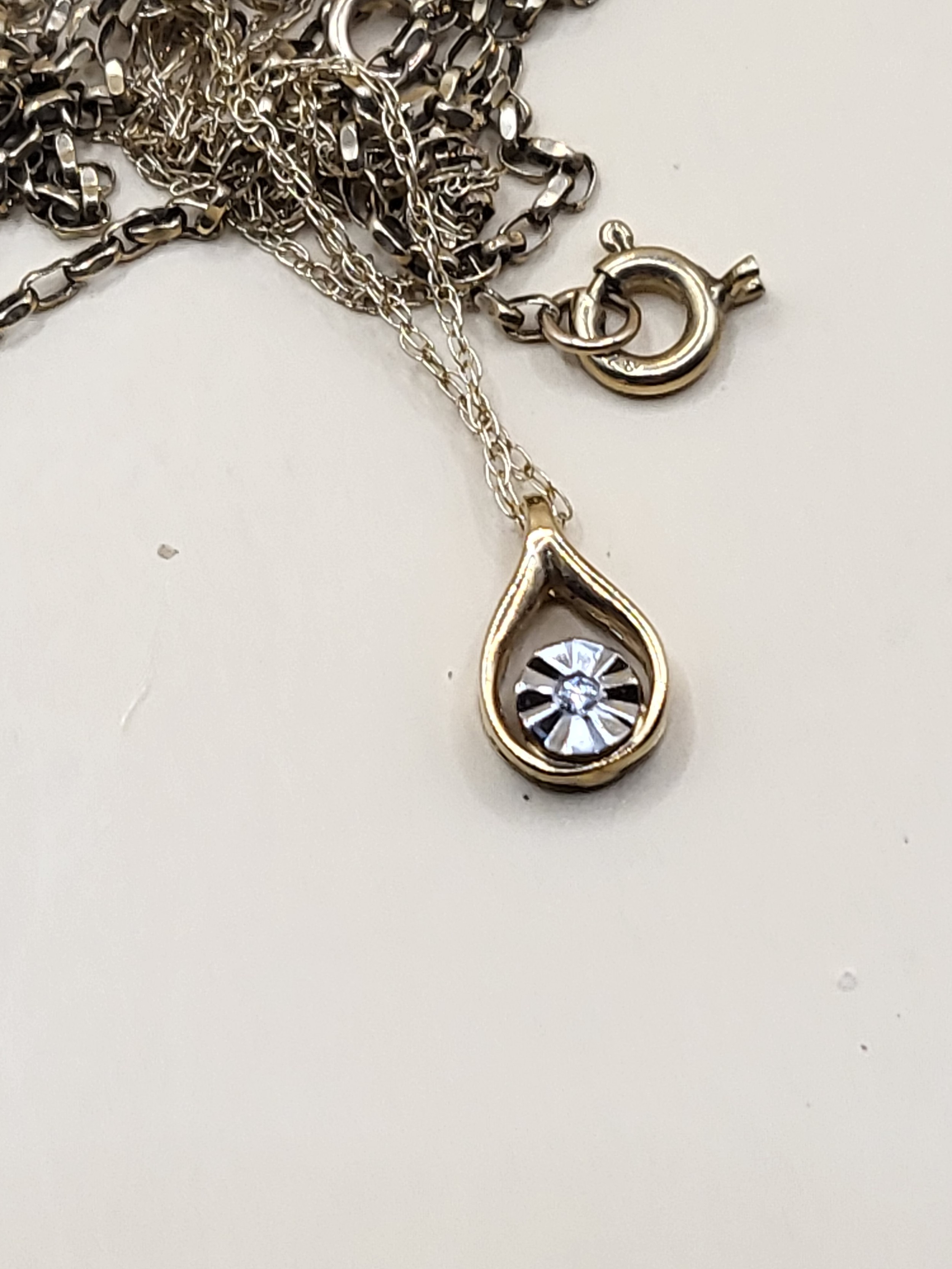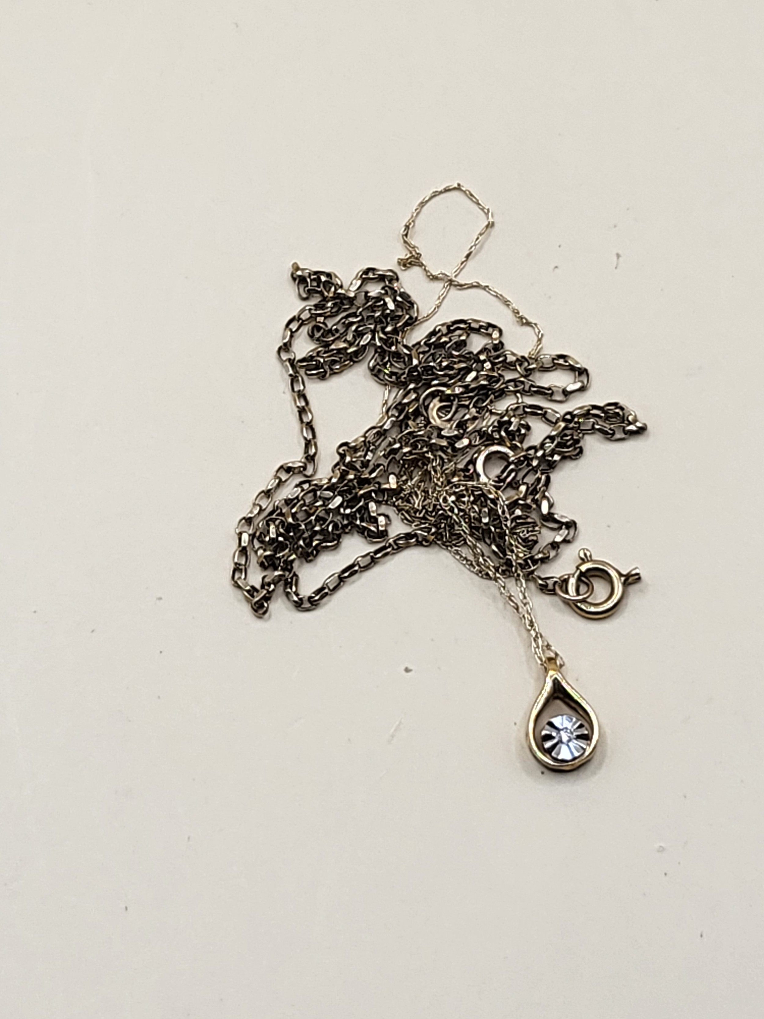 Two 9ct Gold Chains Tangled One With Small Diamond Pendant Weighs 2.8g