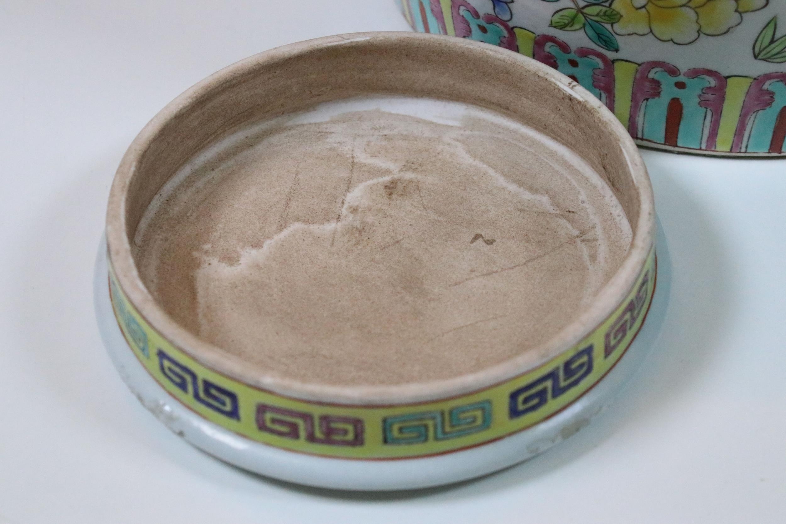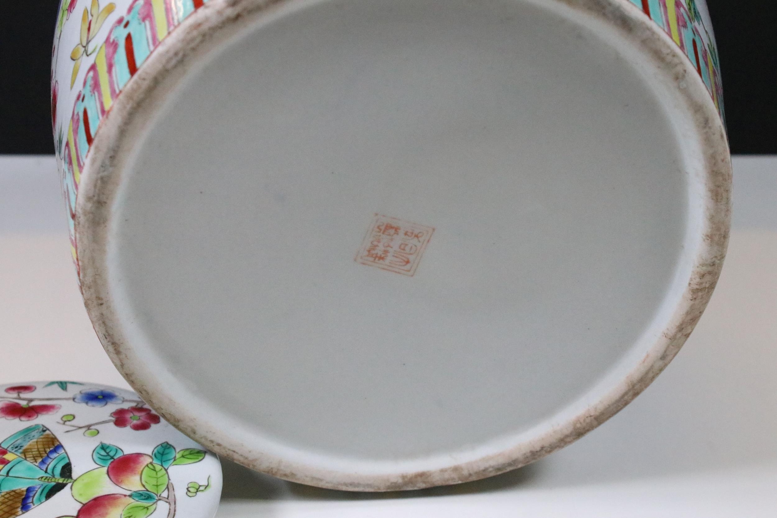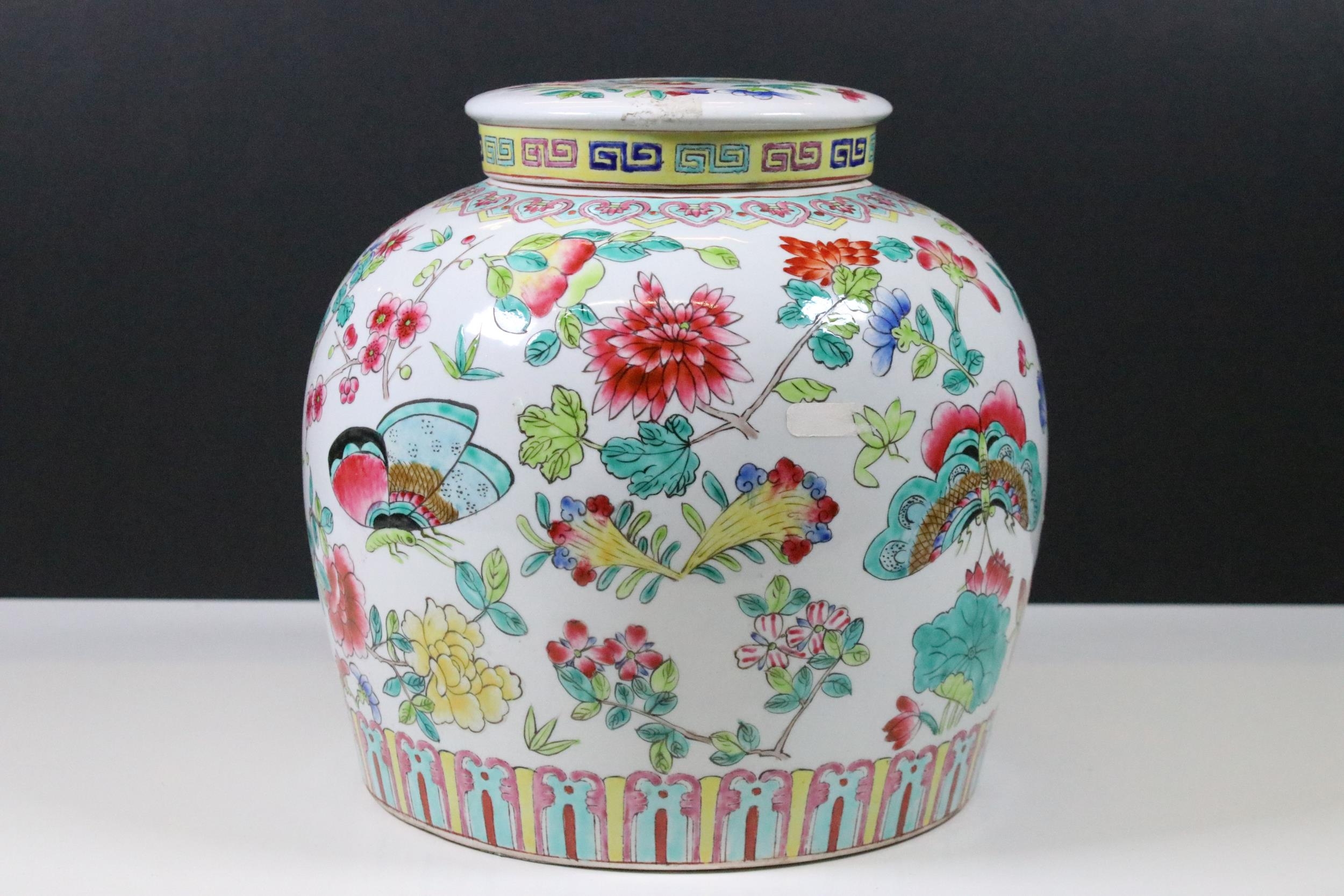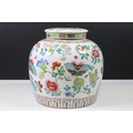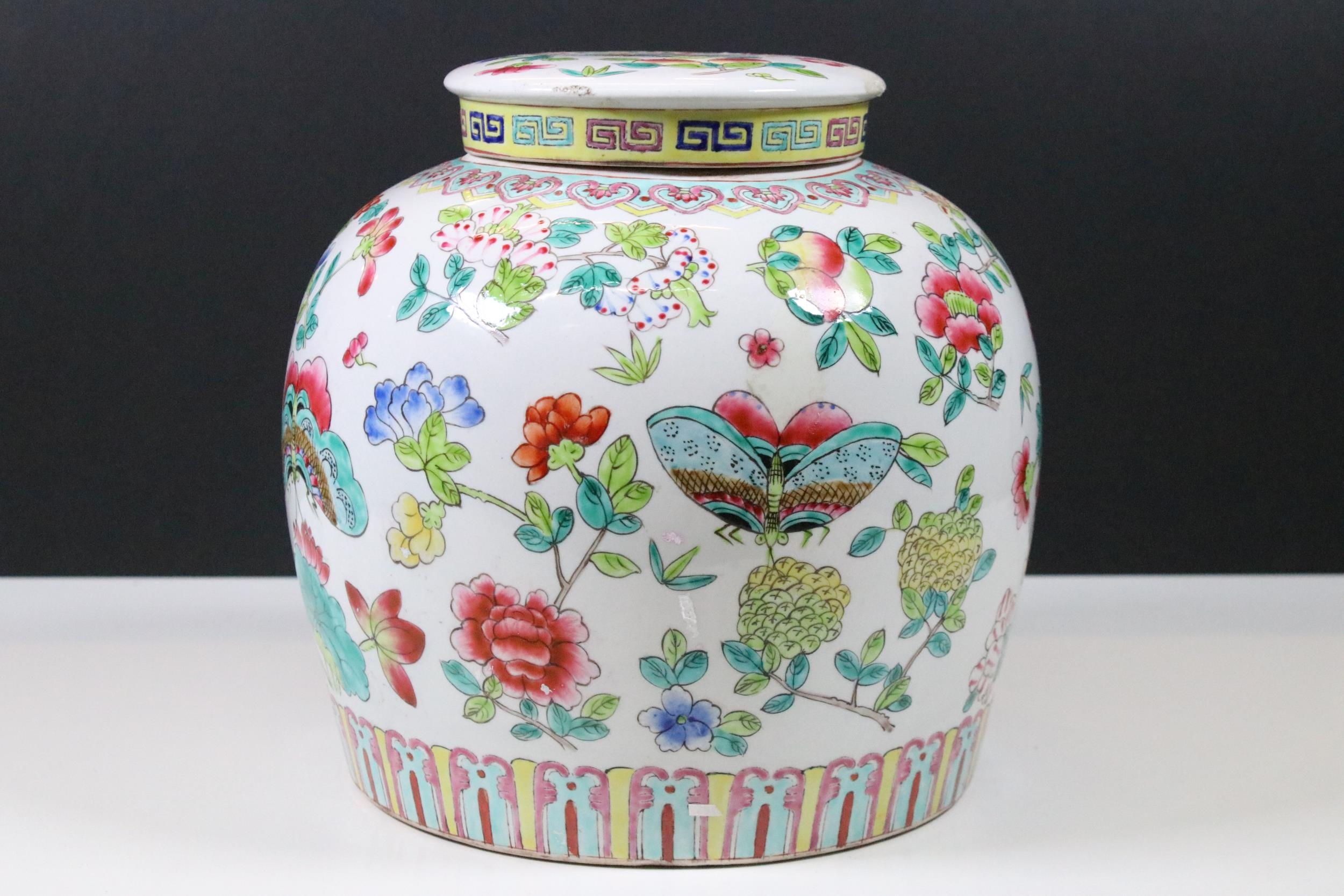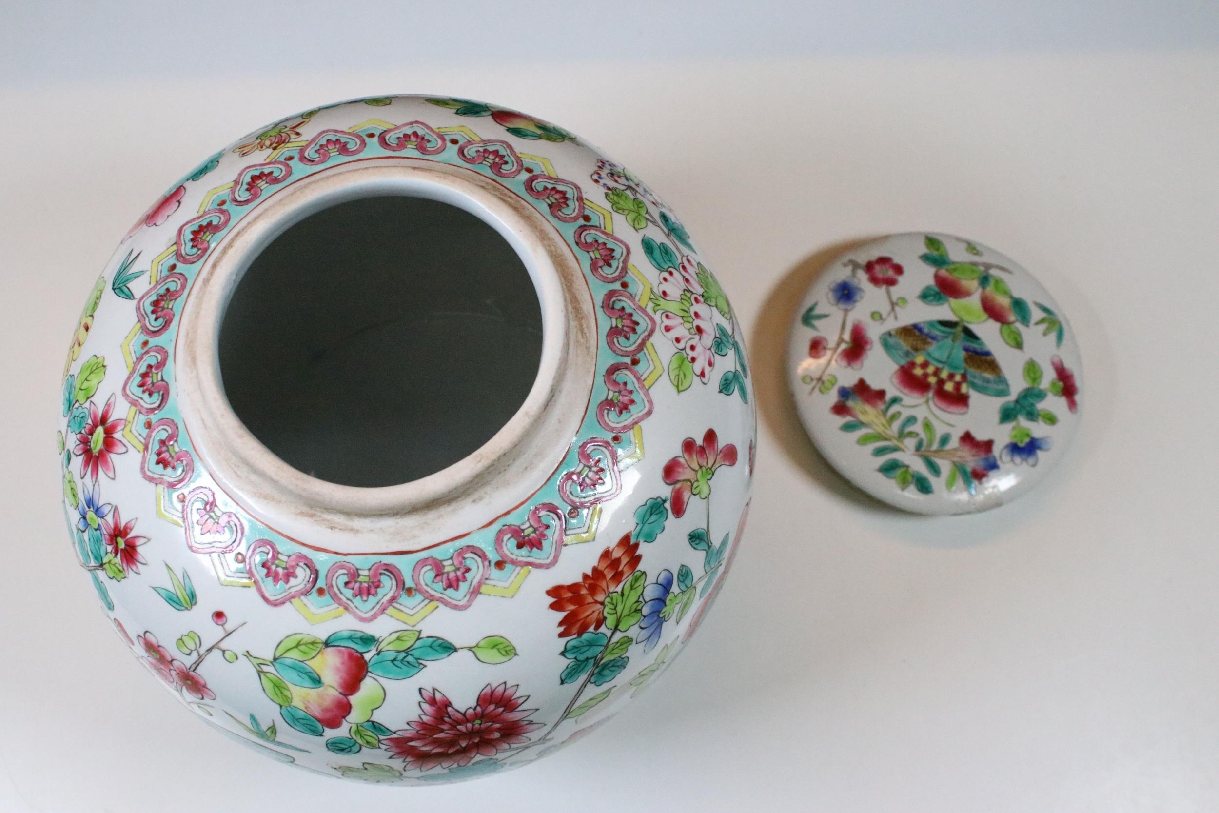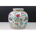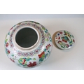 20th Century Chinese Famille Rose lidded ginger jar with floral and dragon fly decoration