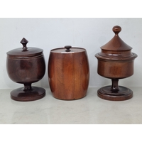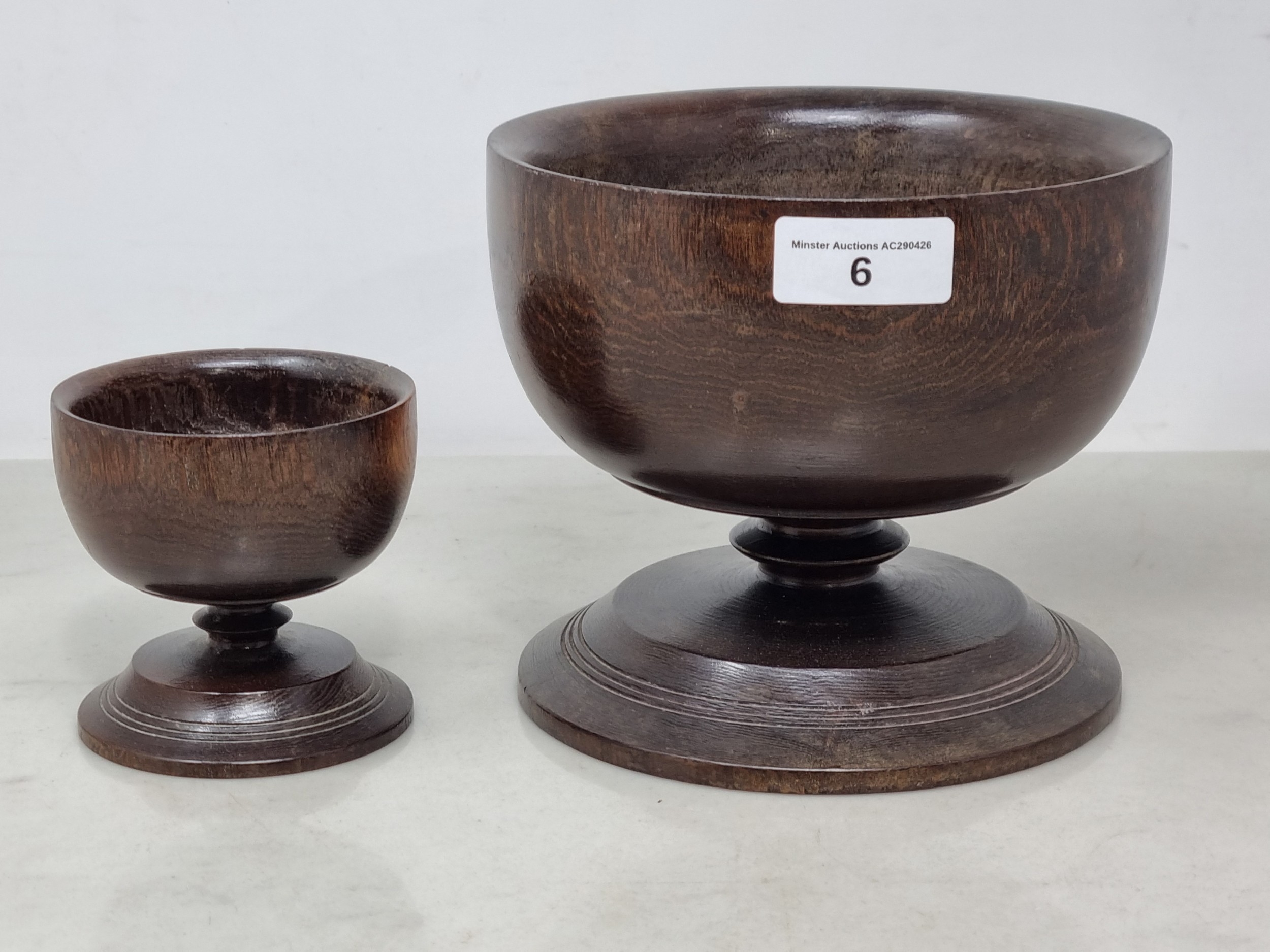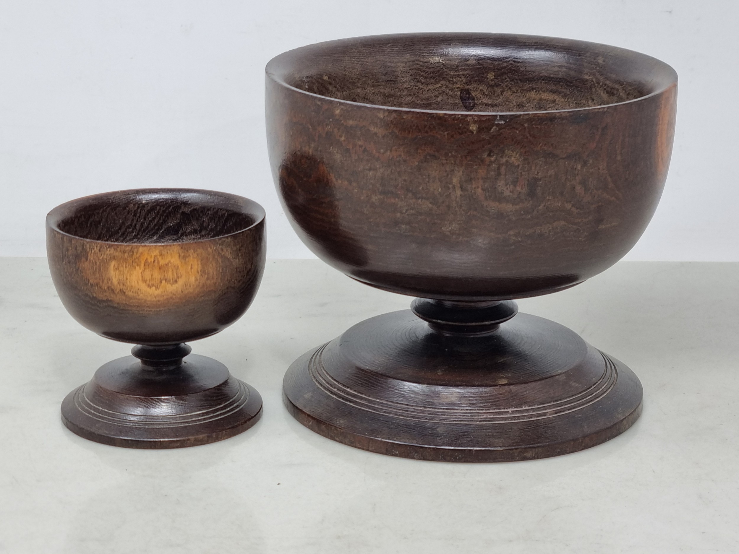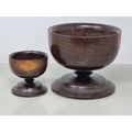 Two Treen Bowls on turned pedestal bases, 6 & 3in diam (R7)