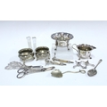 A collection Epns and silver plate to include salts, knife rests, grape scissors, sugar owl, cream jug and jam spoon, etc. (a lot)