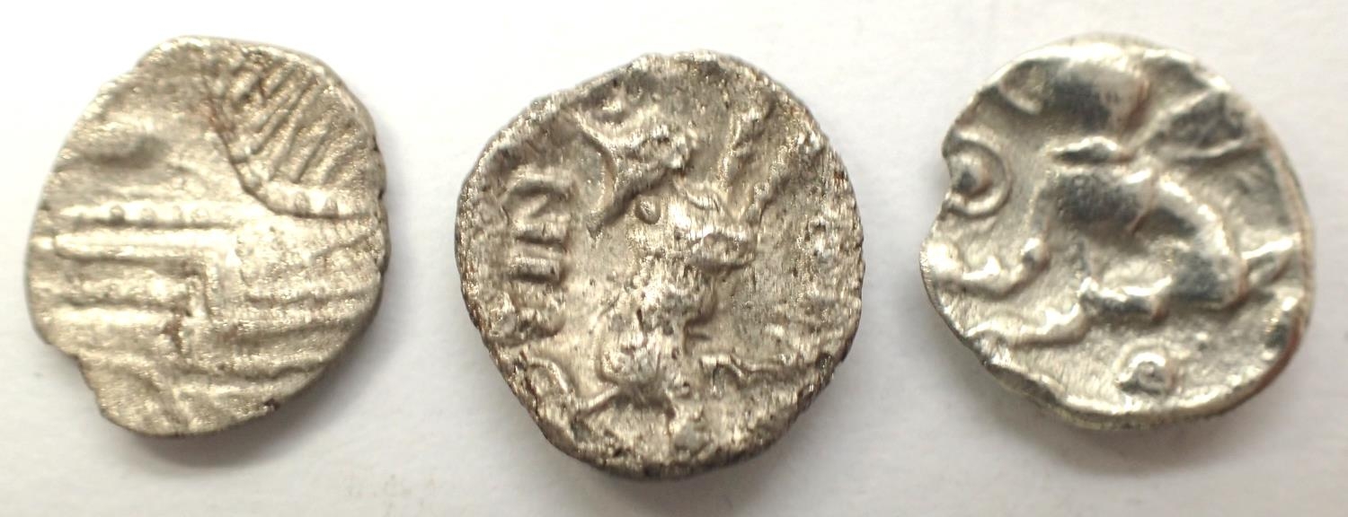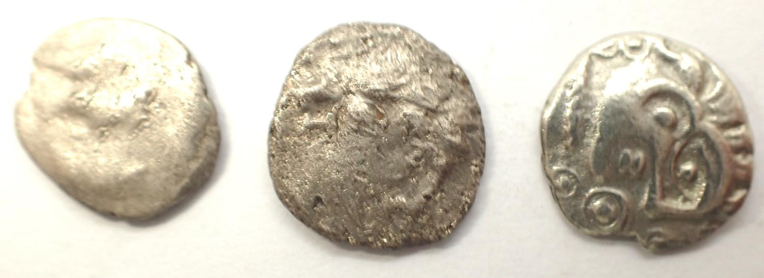 Circa 100BC - 3 Pritani Celtic Silver units to include Geometric, Eppaticus and Iceni types. P&P Group 0 (£5+VAT for the first lot and £1+VAT for subsequent lots)