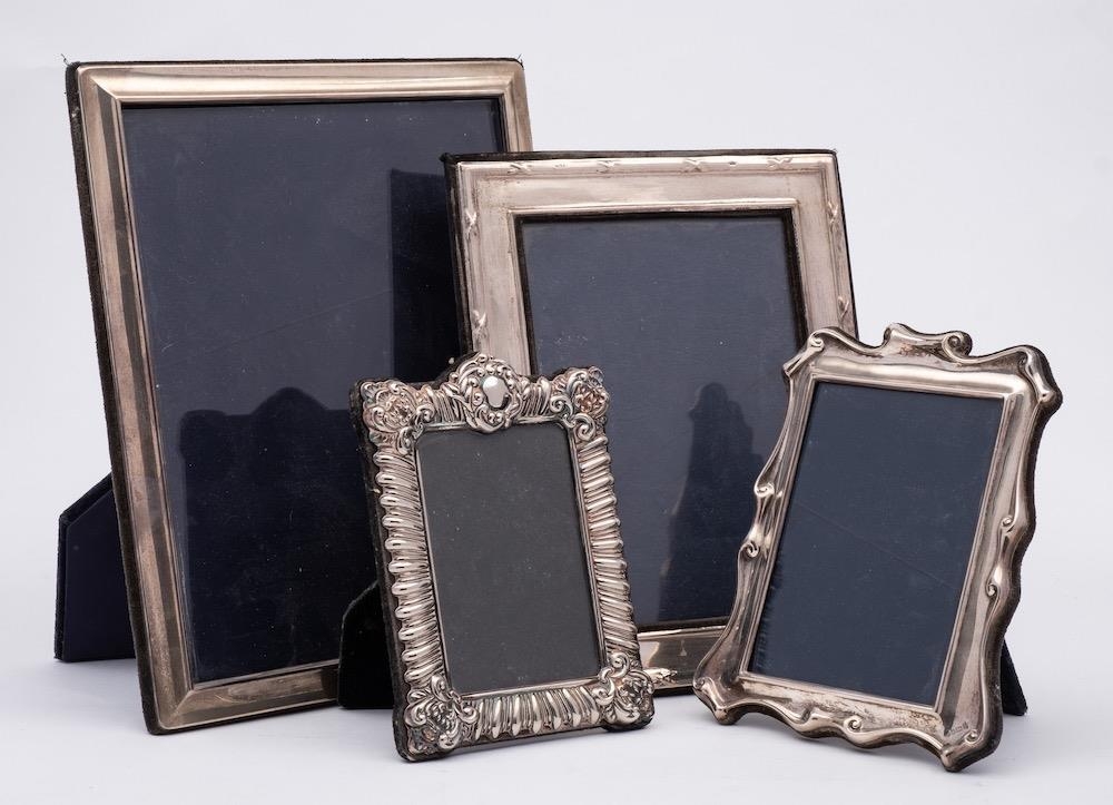 An Elizabeth II silver photograph frame, maker Carrs of Sheffield, Sheffield, 1996: of rectangular outline, 29.5 x 24.5cm, together with two other silver photograph frames and a plated example (4).