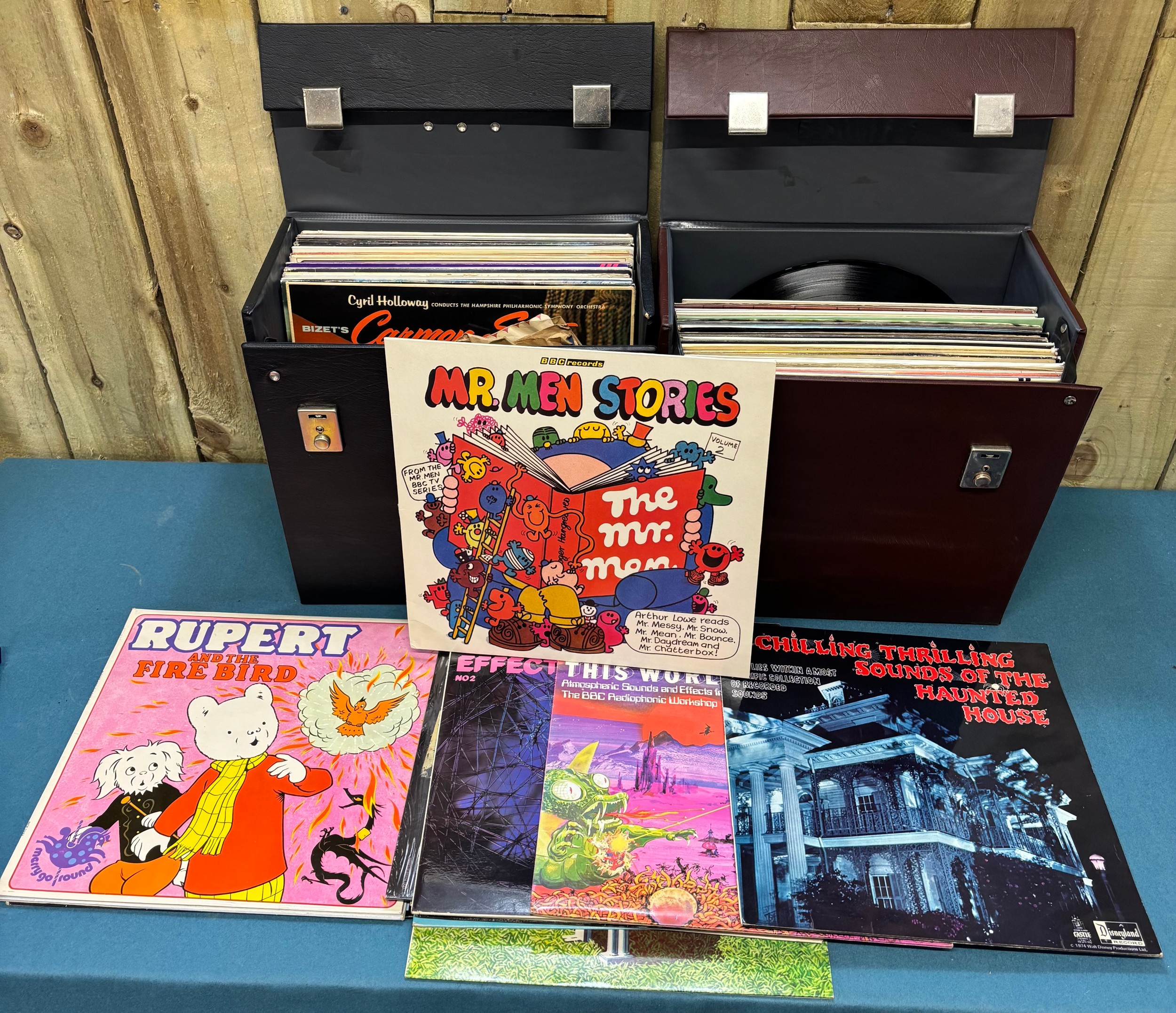 Two record boxes containing a selection of mixed genre LP Re...