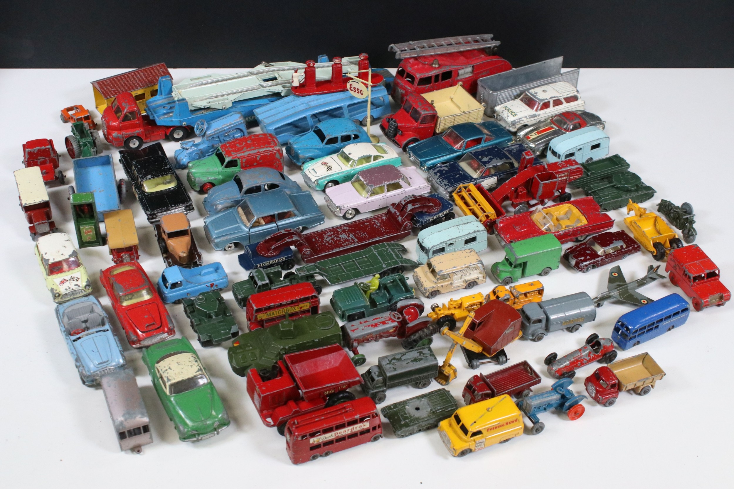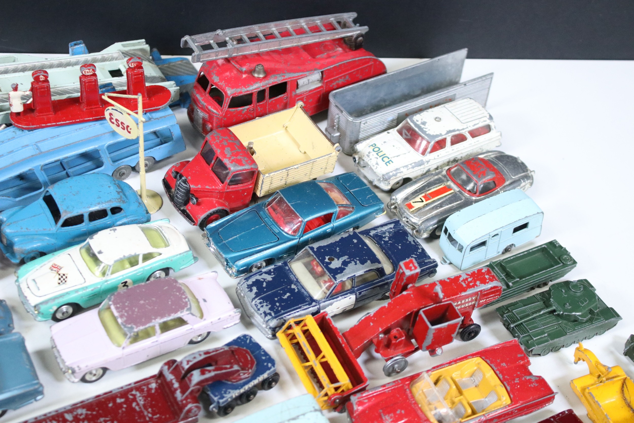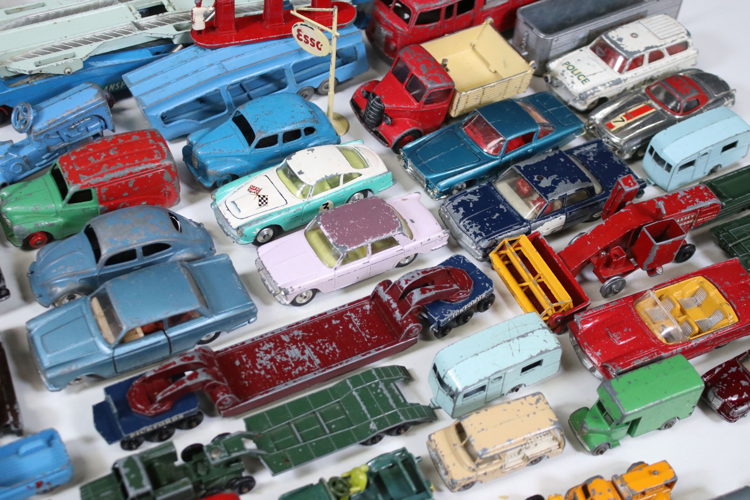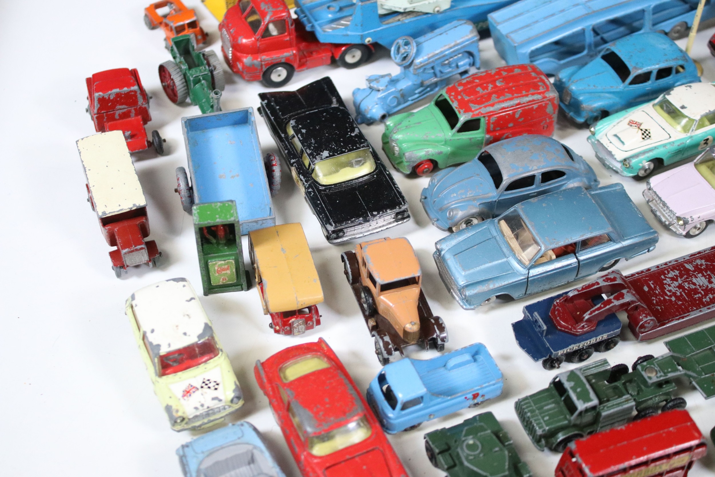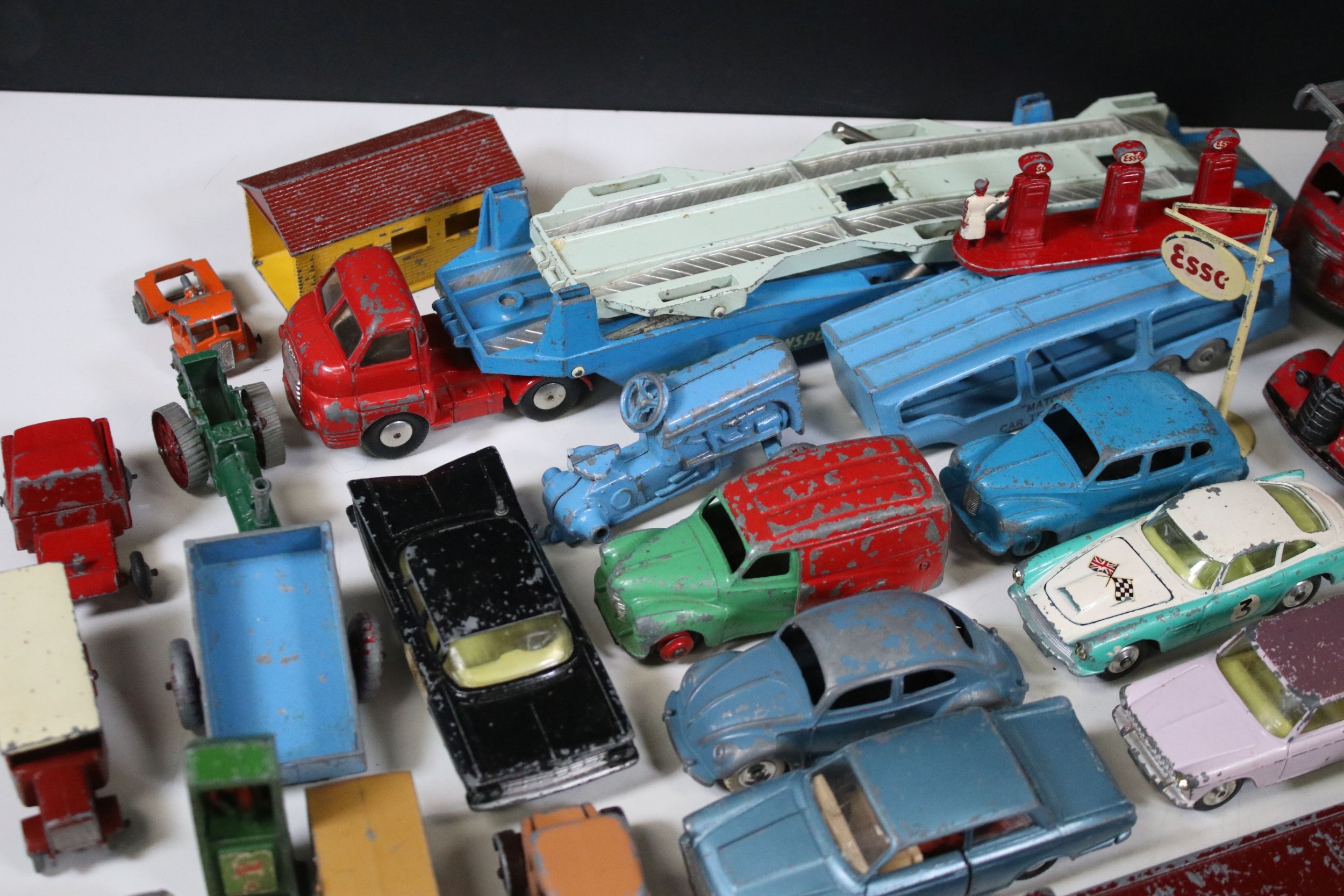 Collection of play worn Mid 20th C diecast models to include Corgi, Dinky and Matchbox featuring Dinky Volkswagen, Corgi Fiat 2100, Dinky BP Austin, Corgi Mini Morris Cooper etc