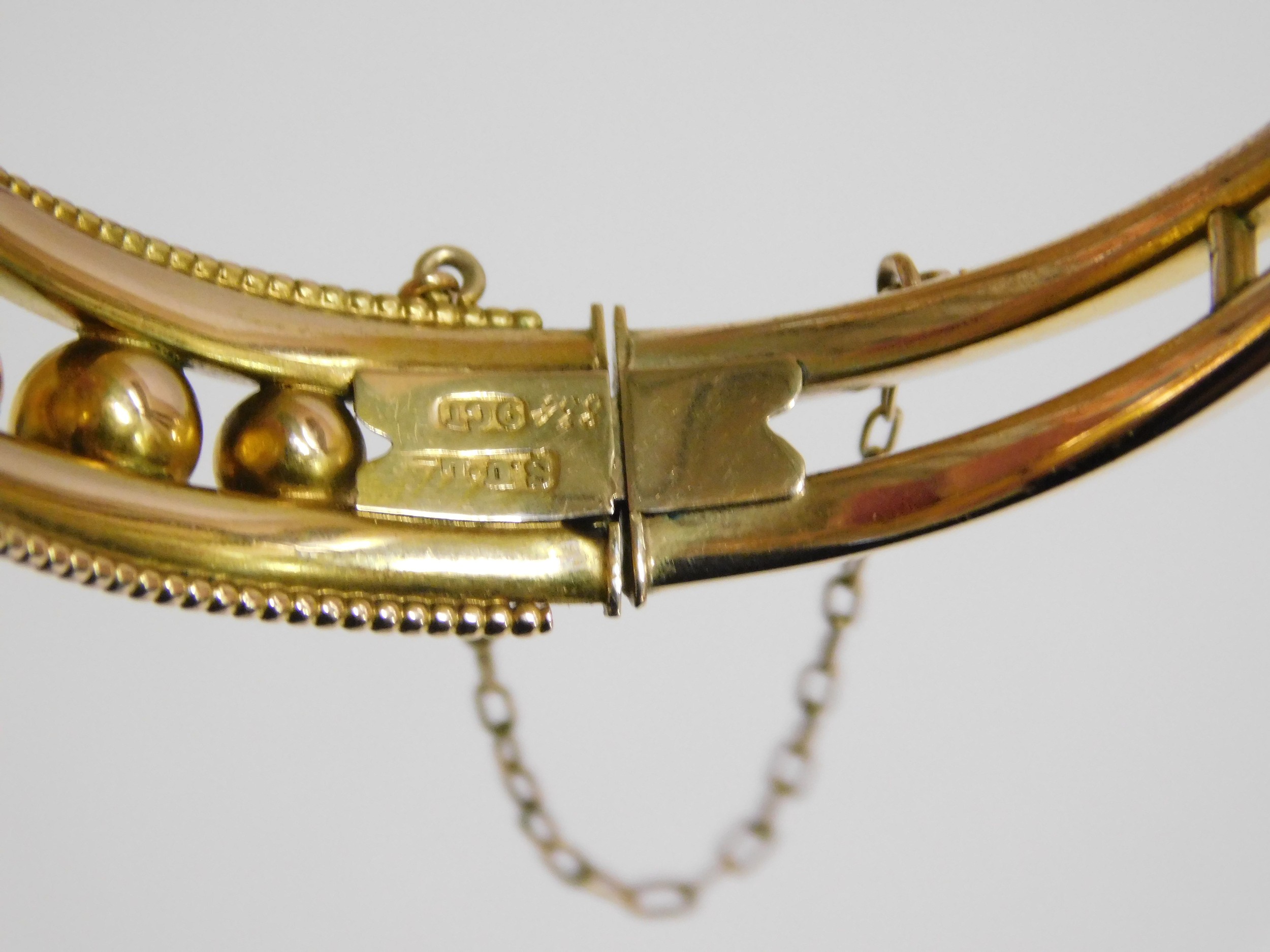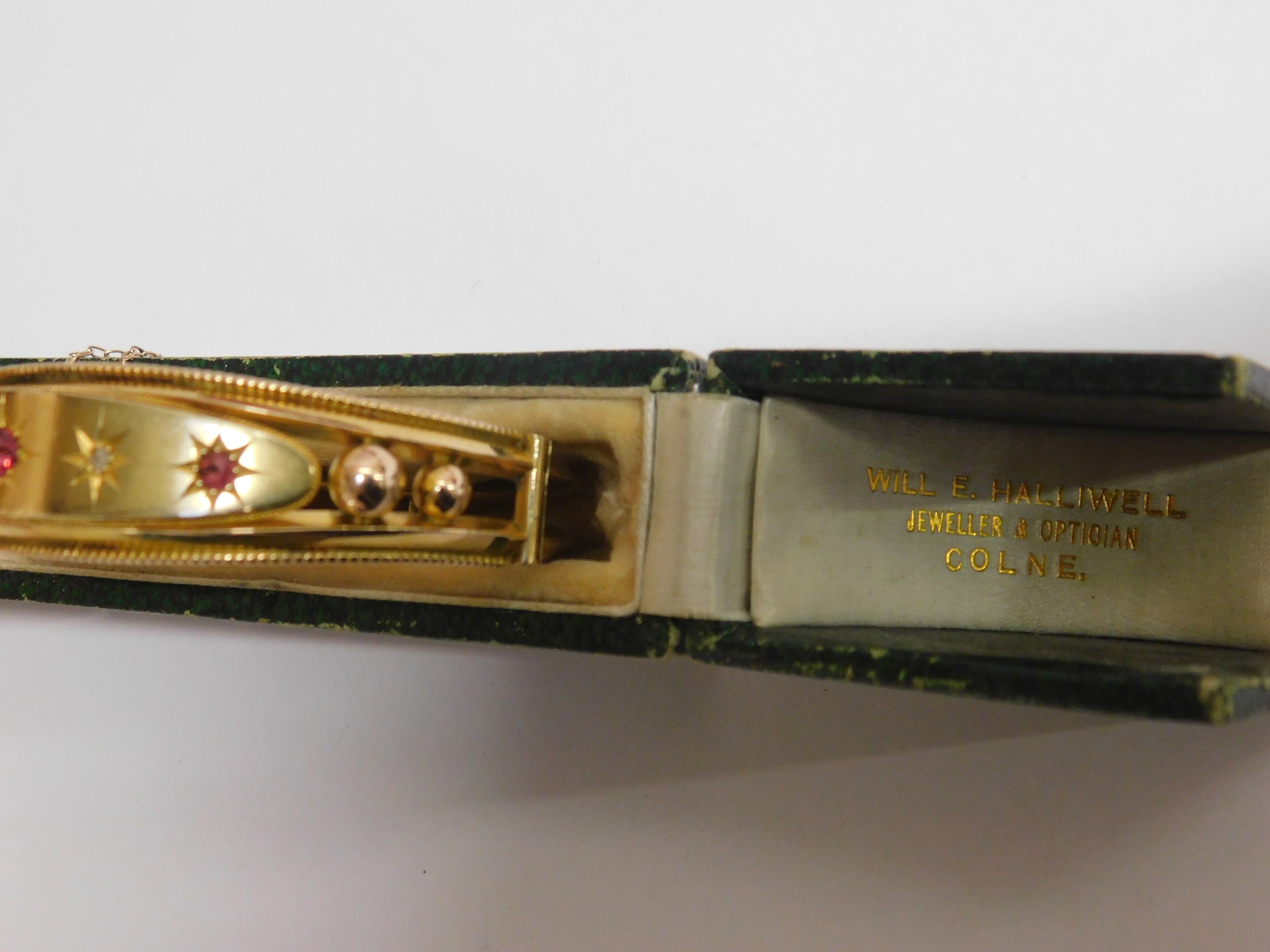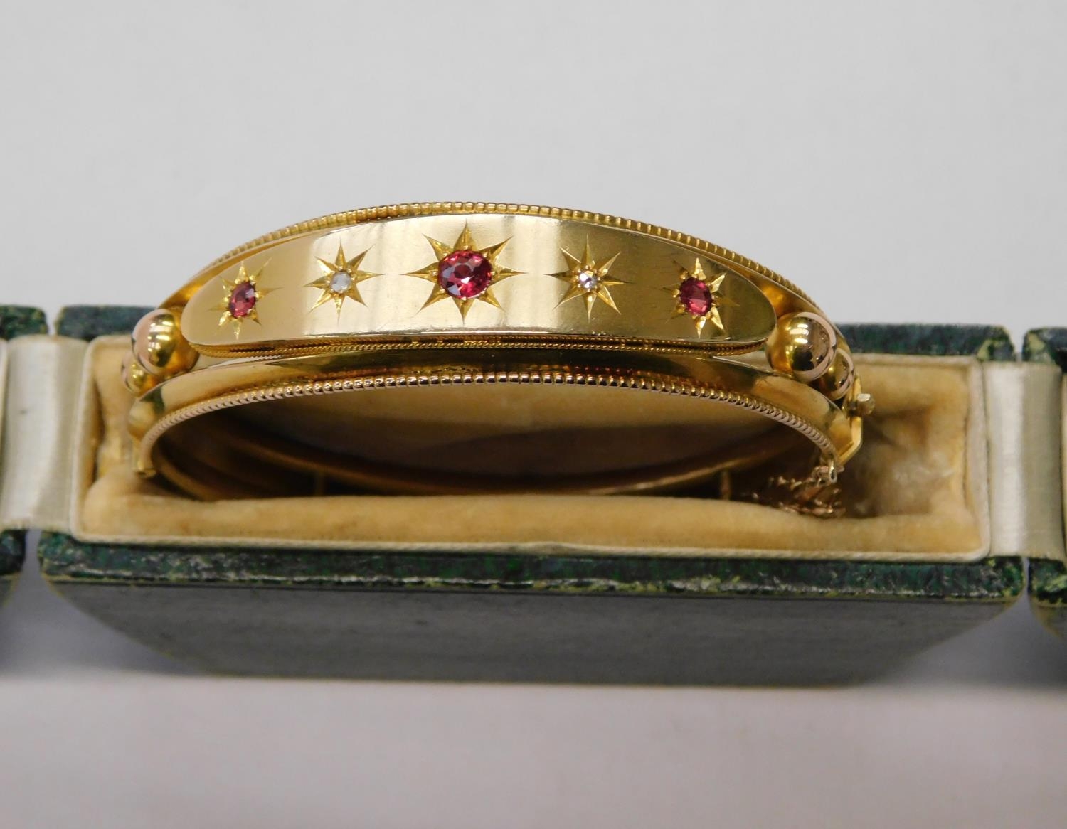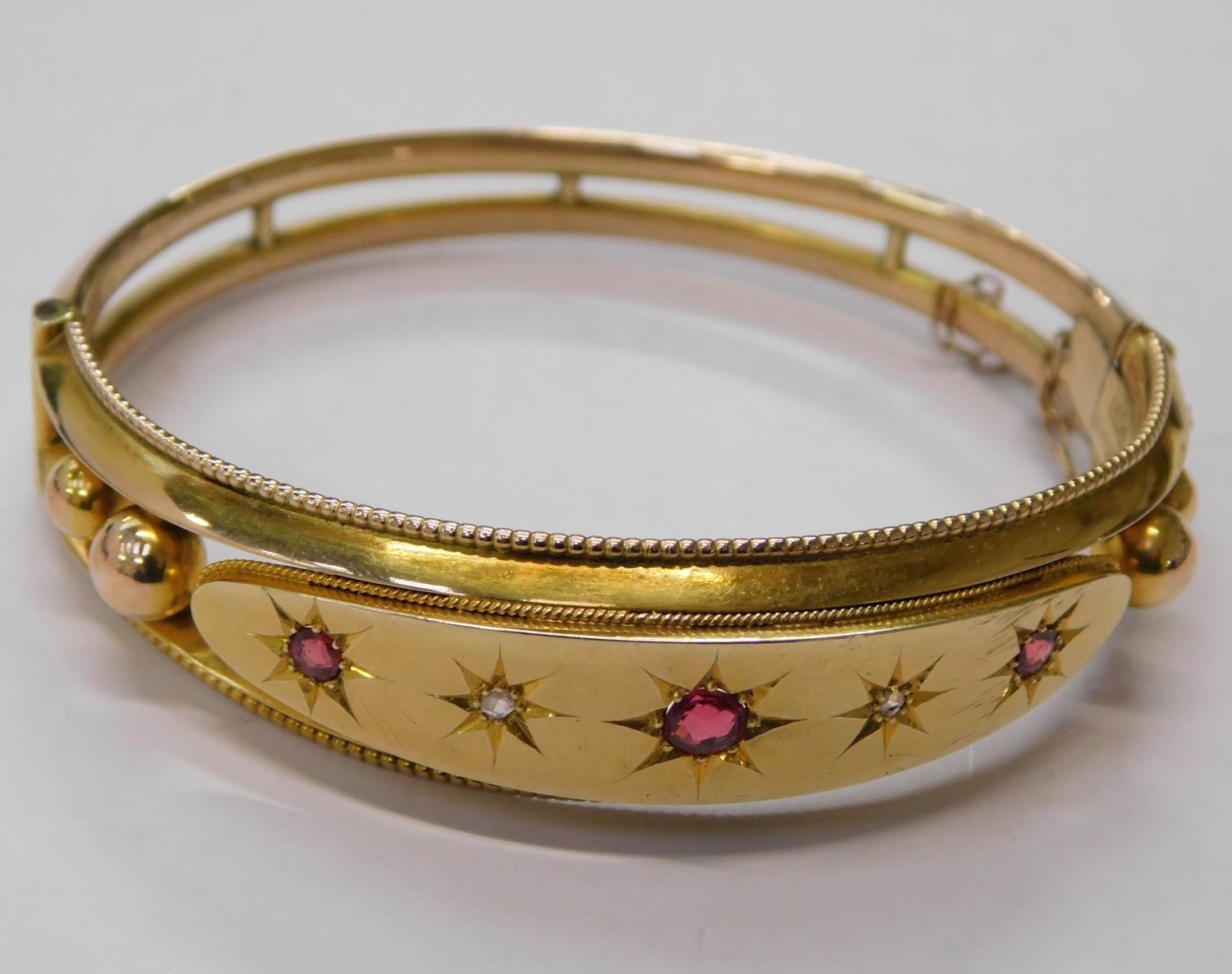 9ct Gold ruby and white stone set bangle in original box - 13.1grams