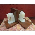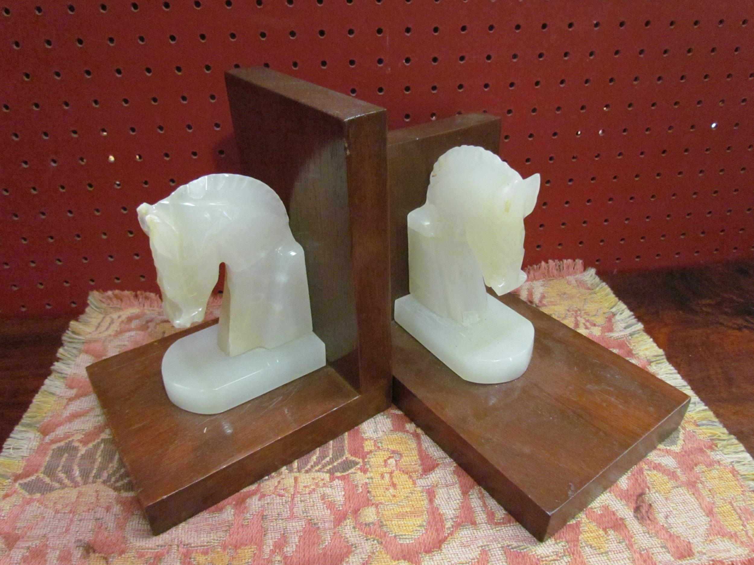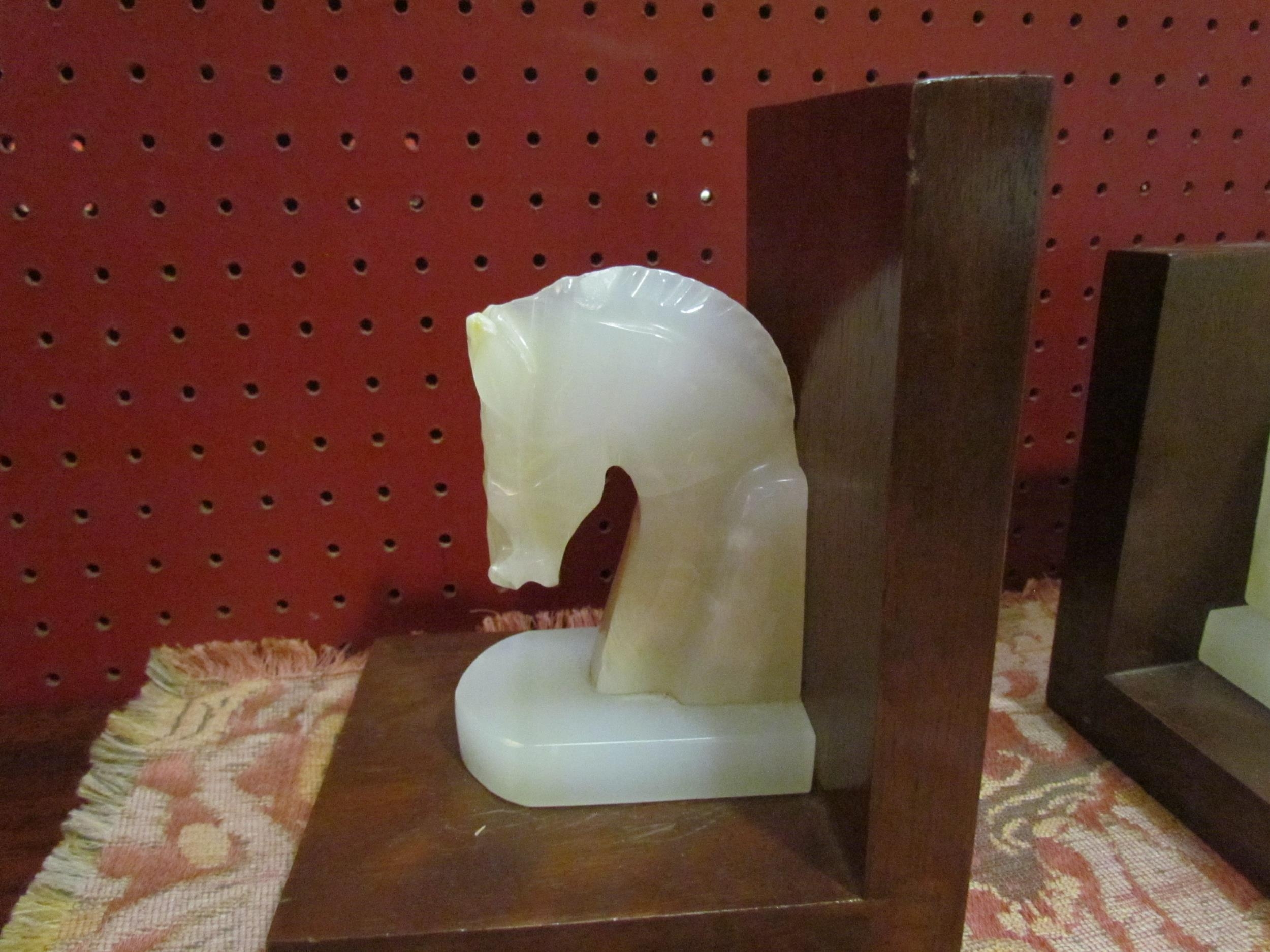 A pair of onyx horse head bookends (E) £10-20
