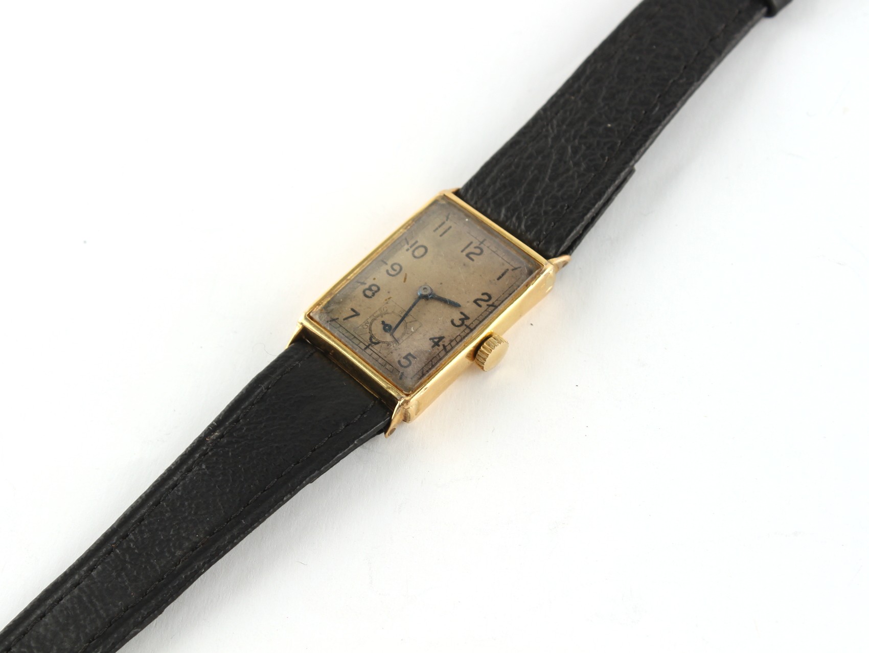 Property of a deceased estate, a private collection of watches - a 1930/40's Zenith 18ct gold tank cased wristwatch, the back approximately 3.8 grams, not currently working.