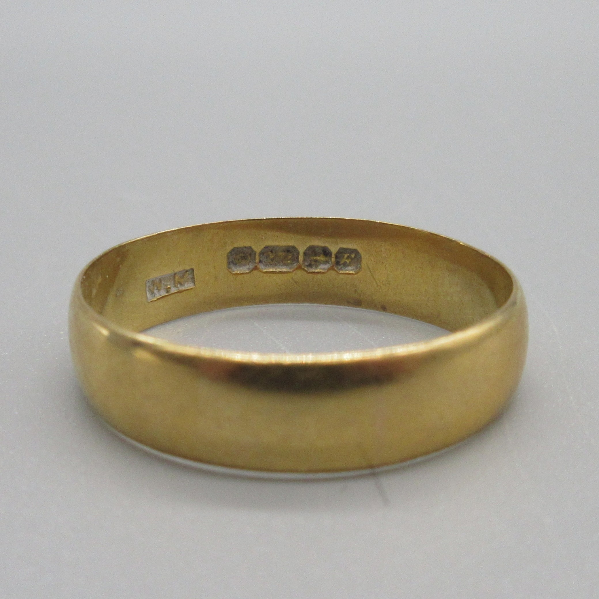 22ct yellow gold wedding band, stamped 22, size Q, 3.3g