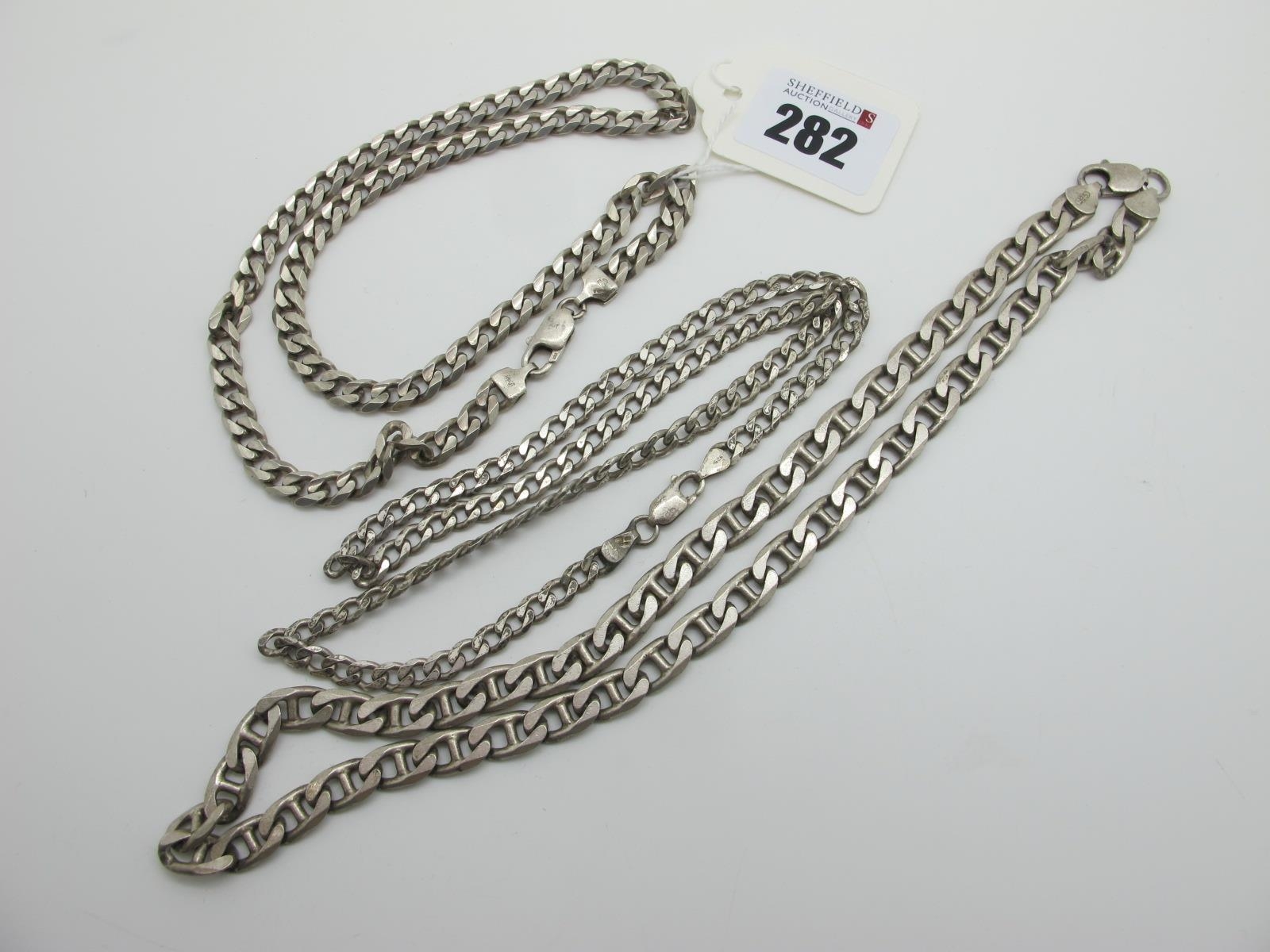Solid Fancy and Curb Link Chains, stamped "925" (3)