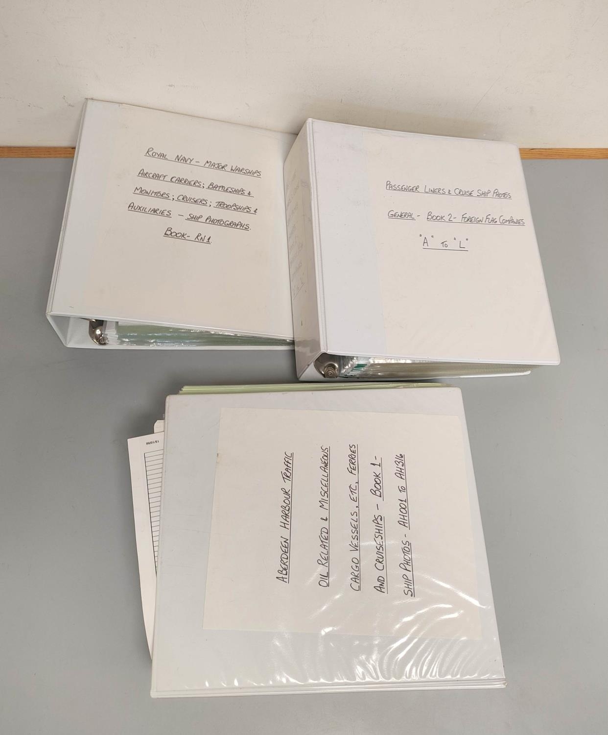 Three nautical photographic albums from the collection of an avid collector comprising of views of contemporary and historic views of ships. To include views of HMS Ark Royal, Normandie, HMS Illustrious etc as well as commercial ships in Aberdeen harbour. 3