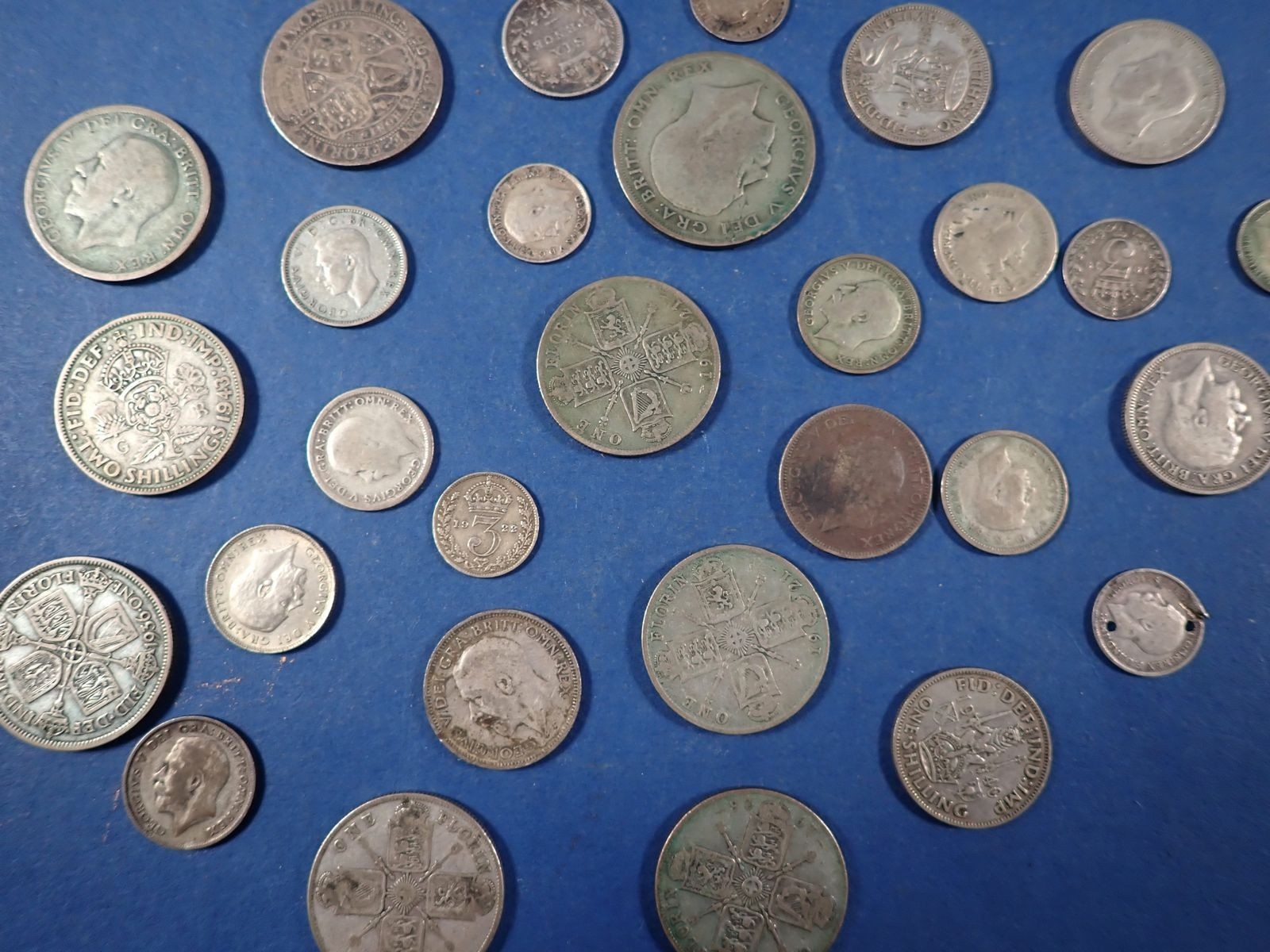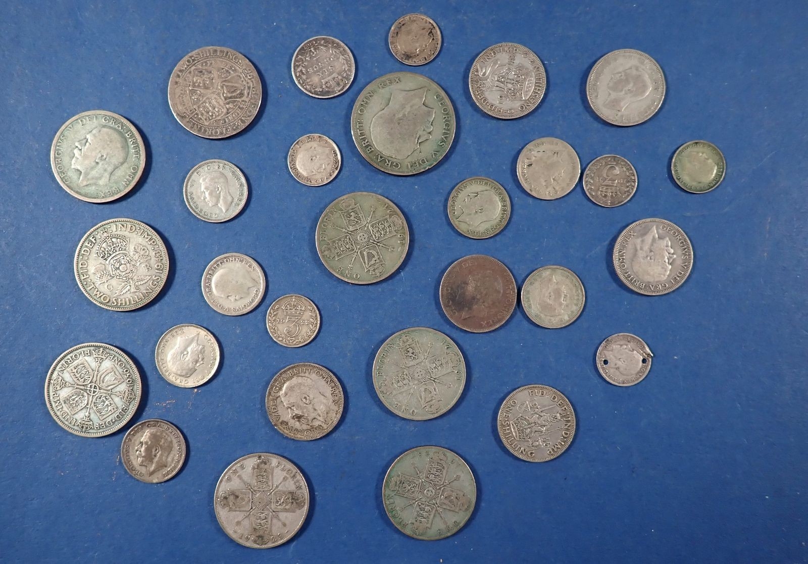A group of British silver coins including Victoria - George VI, threepences, sixpences, shillings, florins, half crowns etc, pre 1920 15g, pre 1947 146g total weight of coins, Cond: Poor - Fine