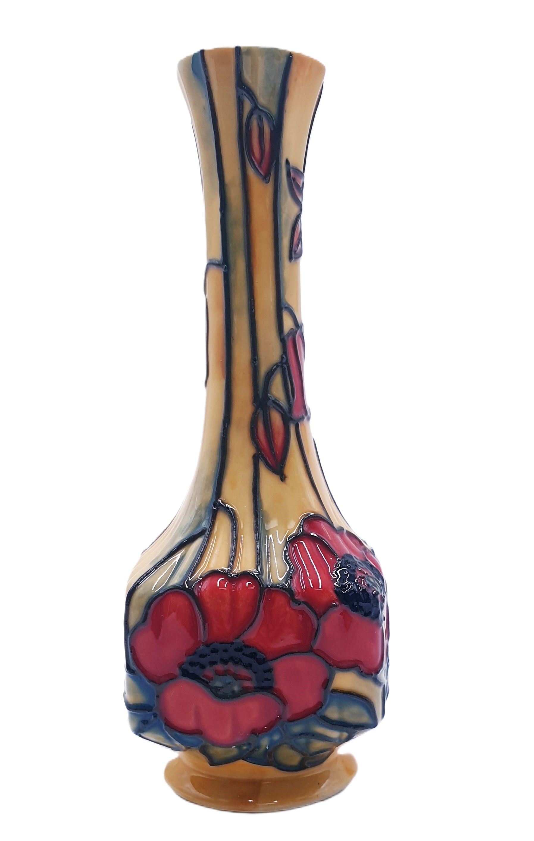 OLD TUPTON WARE TUBELINED 18cm SQUARE BASED BUD VASE IN THE YELLOW POPPY DESIGN (Product Code 1691) (As New, Original Box)