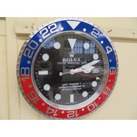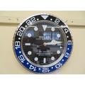 Wall clock in the style of a Rolex Batman GMT Master II with black dial and date aperture