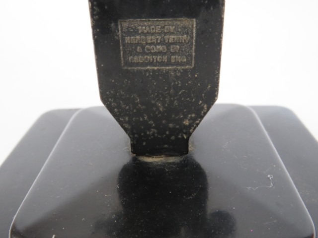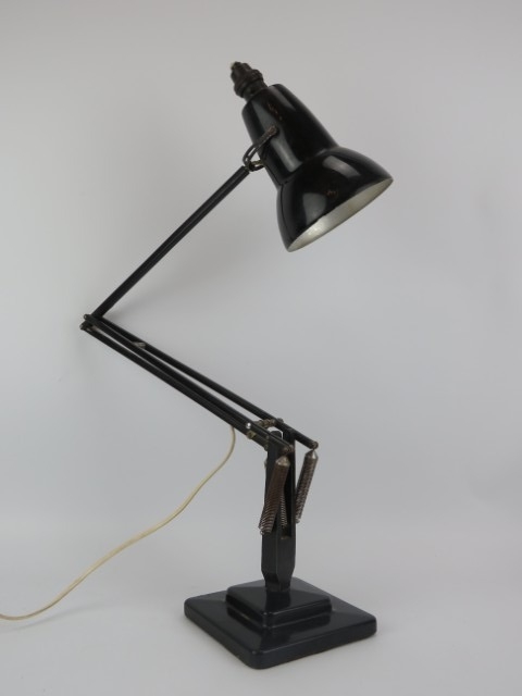 A vintage Herbert Terry black anglepoise adjustable office desk lamp. Base: 15 cm width.